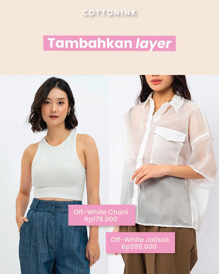 Kemeja putih sepertinya jadi salah satu item basic yang harus ada di lemari. Item satu ini memang sangat serbaguna dikenakan untuk berbagai kesempatan. Kalian bisa mengenakan kemeja putih untuk tampilan yang berbeda-beda. Bagi kalian yang ingin tampil kasual namun tetap ada sentuhan feminin, cobalah kenakan kombinasi kemeja berbahan organza sebagai luaran. Jangan lupa padukan dengan tanktop berwarna putih juga sebagai inner. Komposisi yang tepat tentunya akan menghasilkan tampilan yang matching.