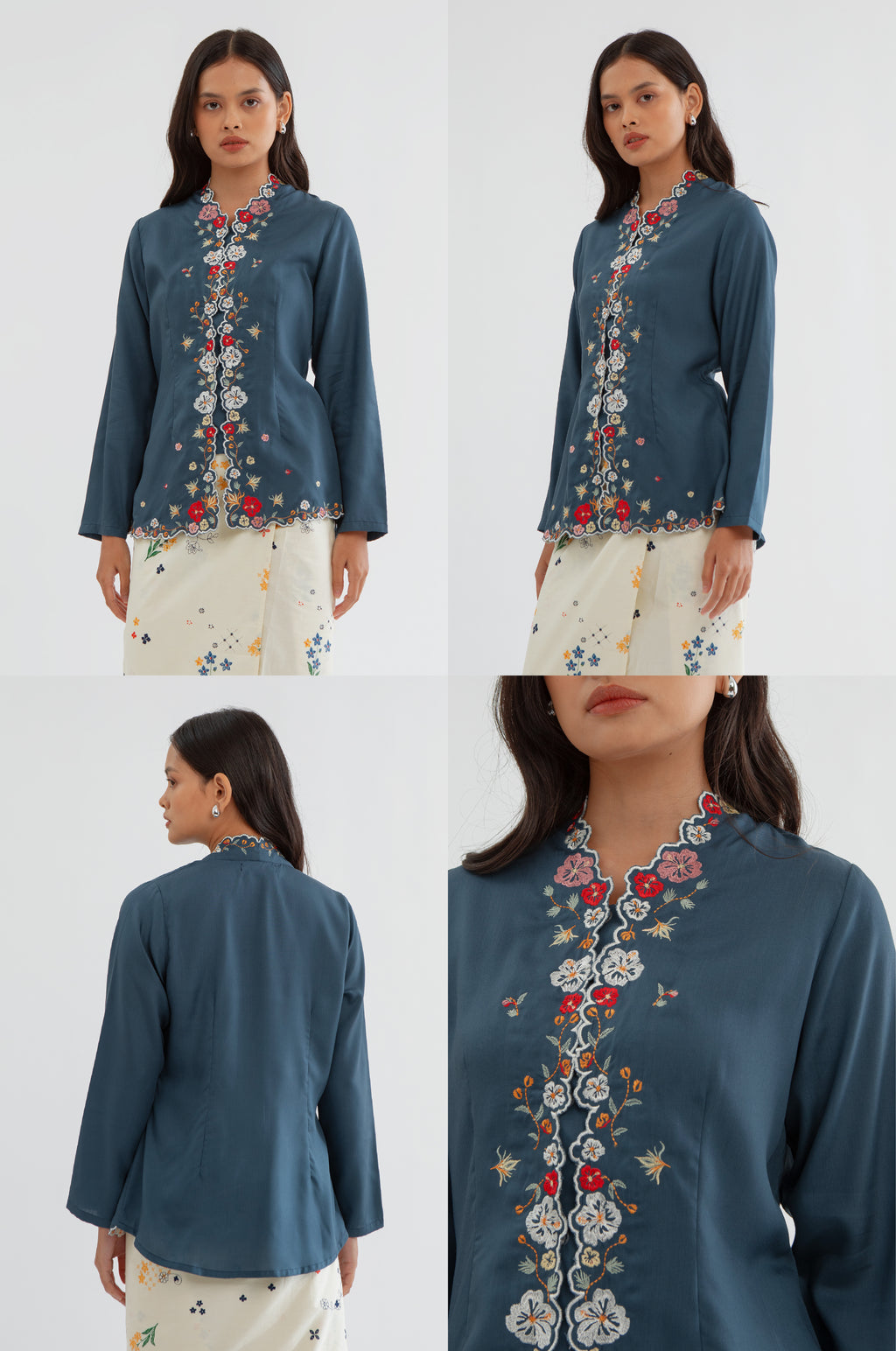 A nod to Peranakan heritage, this kebaya encim features delicate embroidery and a timeless, regular silhouette.