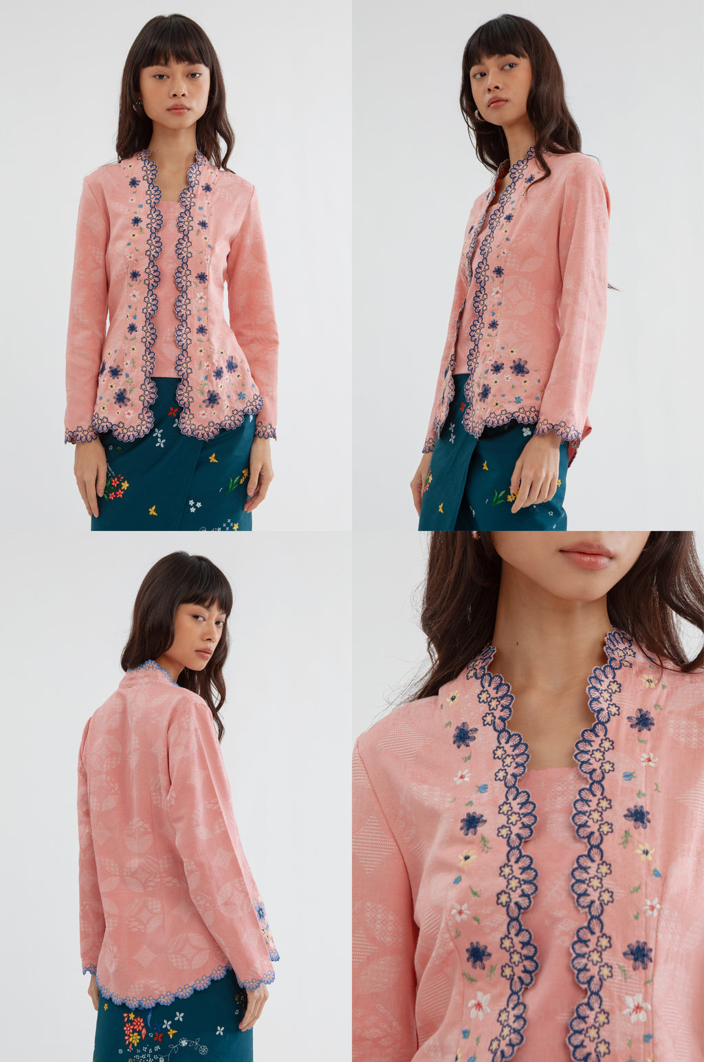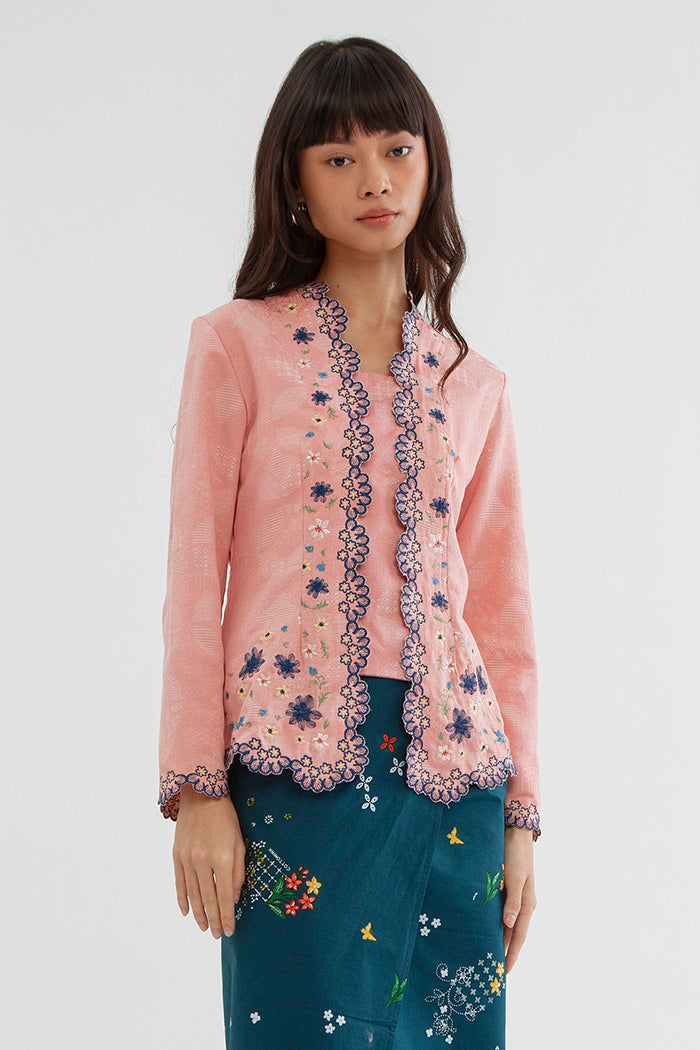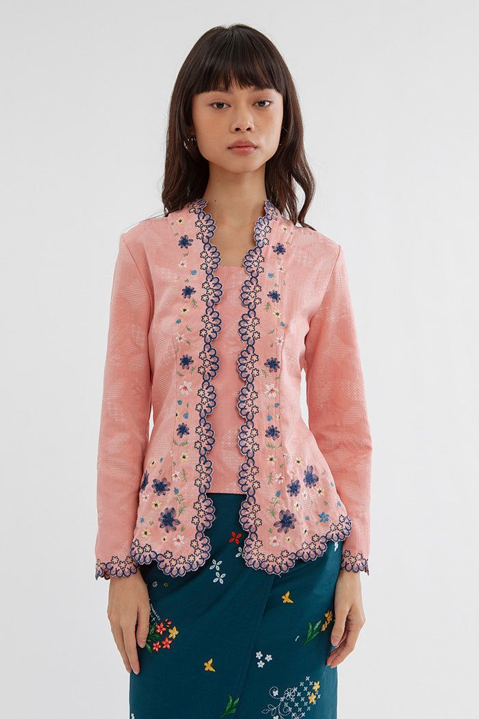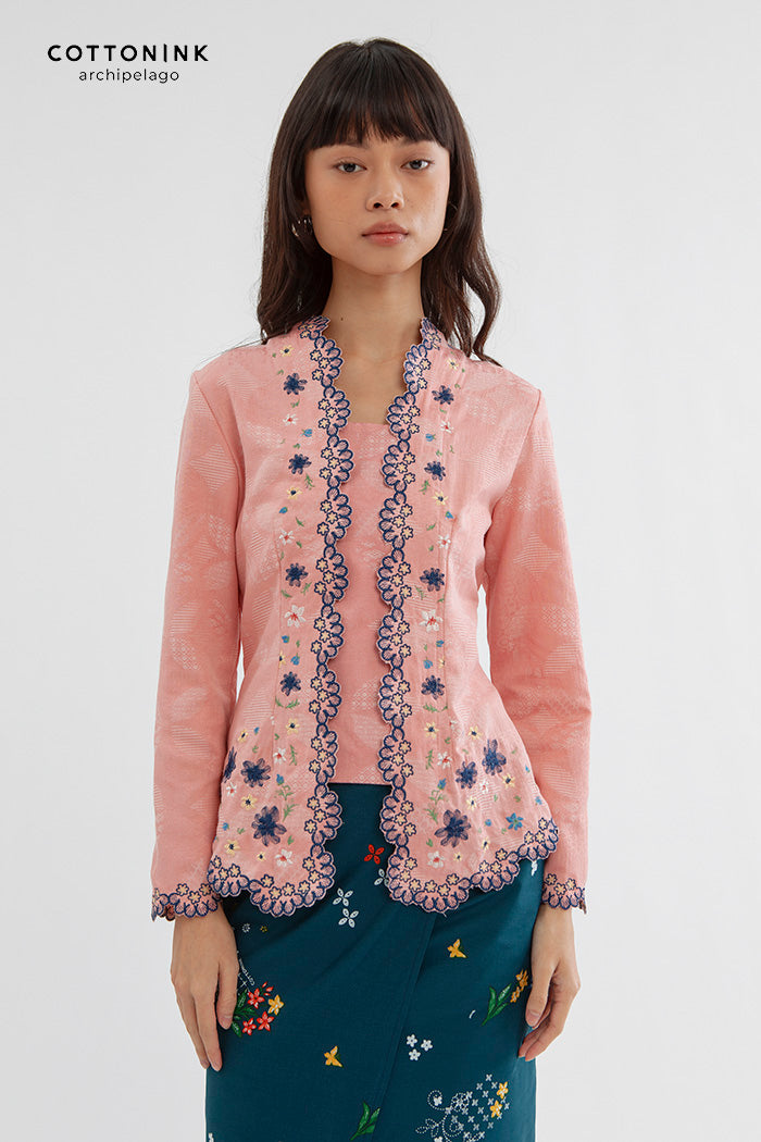 This embroidered kebaya is cut from cotton-blend for a regular fit and is designed with a square neckline and scalloped trims. Team it with kain lilit, sandals and your favorite jewelry.
