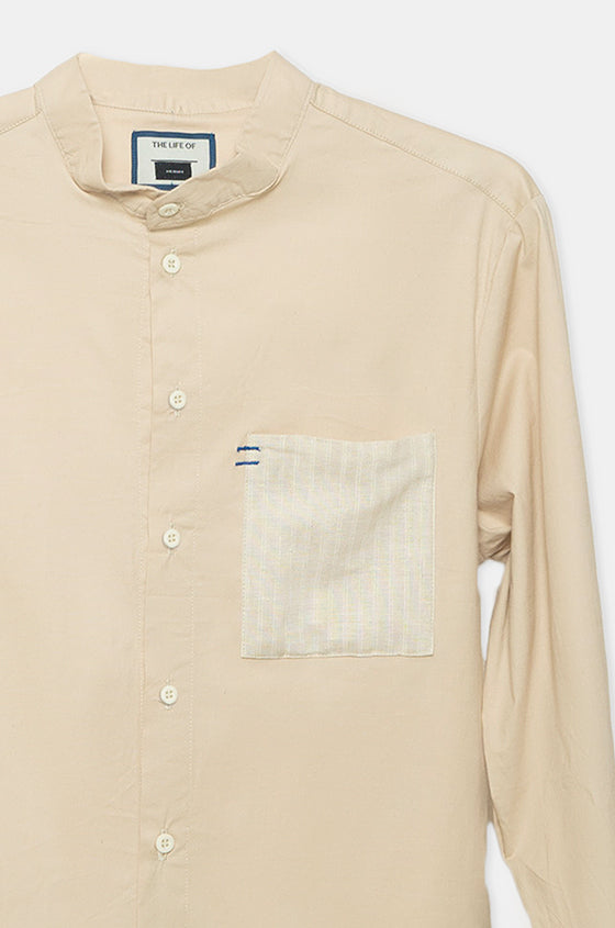 We have the casual wear you need to stay super comfy. Classic long sleeved shirt in solid color. Features Mandarin collar, front button opening and single pocket.