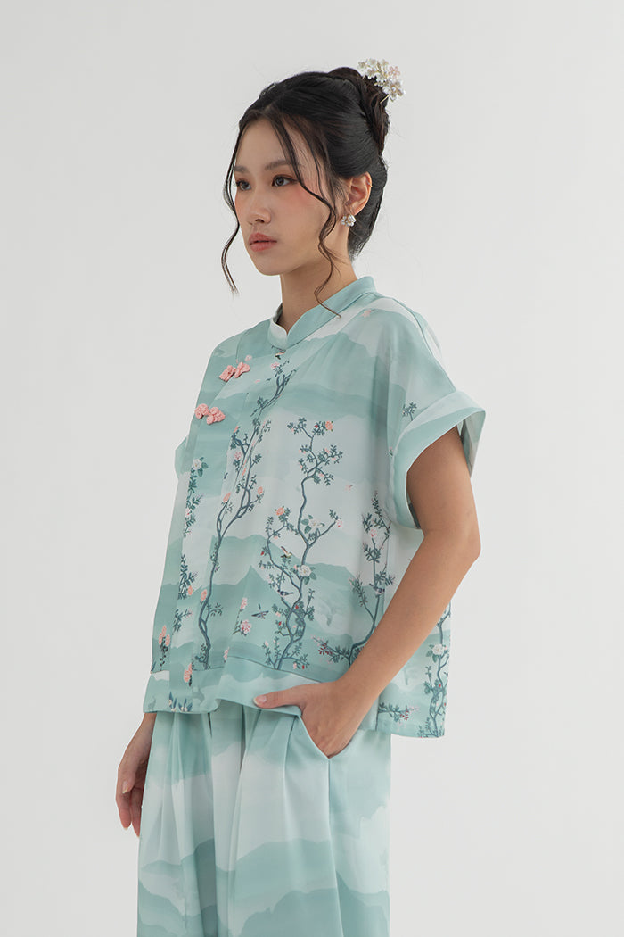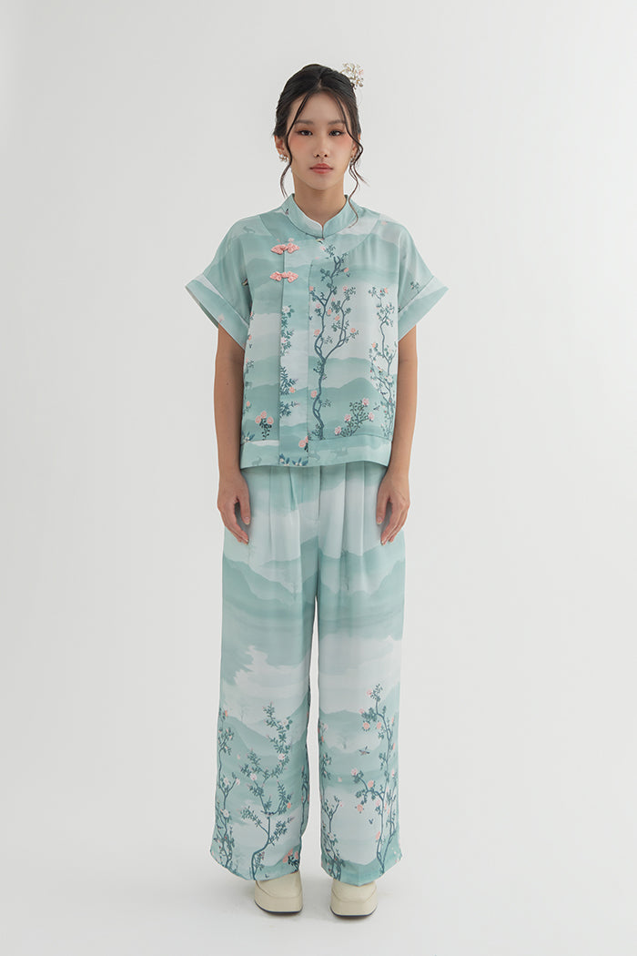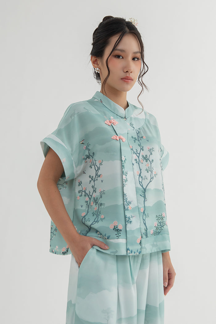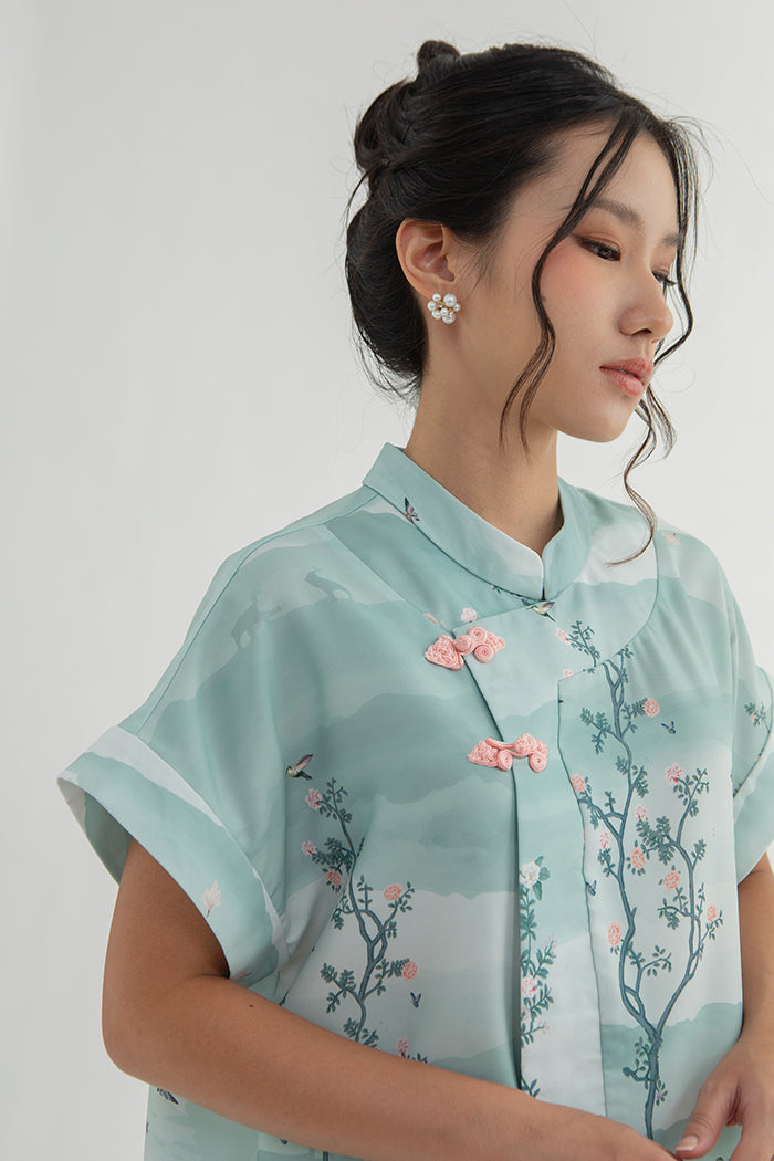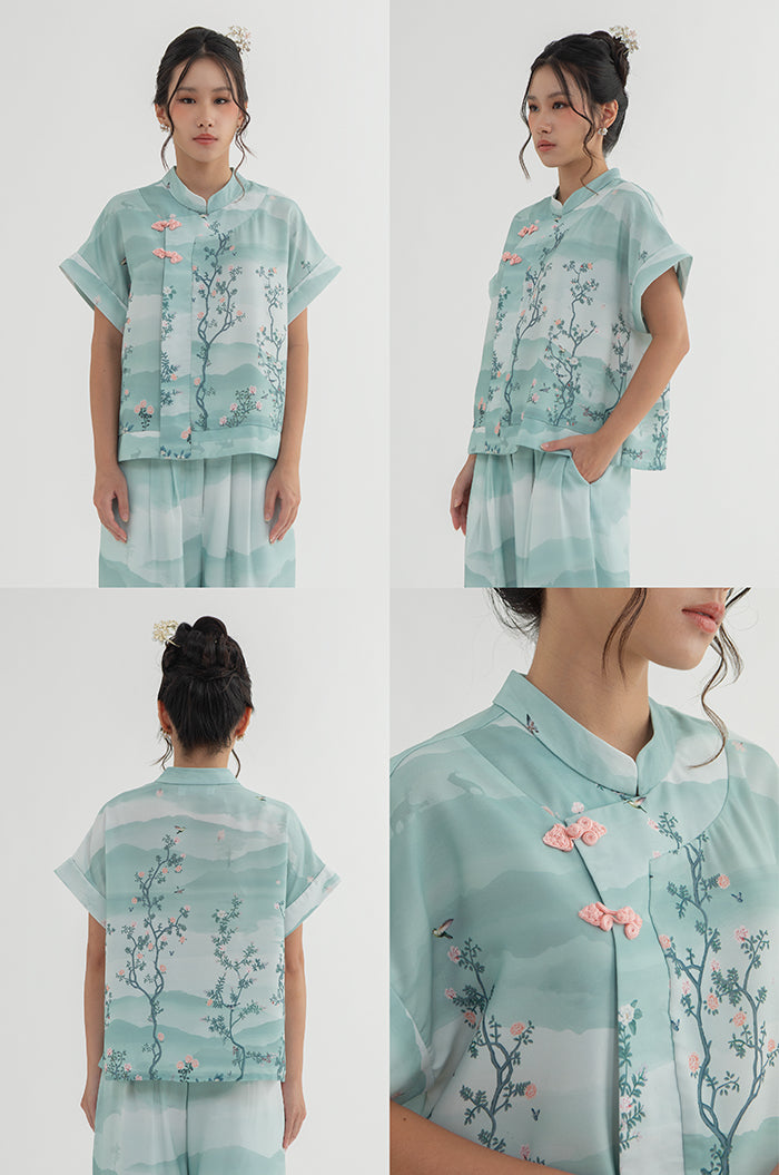 Chinese New Year is the perfect excuse to show up in wearable art. Designed with a boxy fit and button up opening in the front, wear yours with a flared pants and heeled sandals.