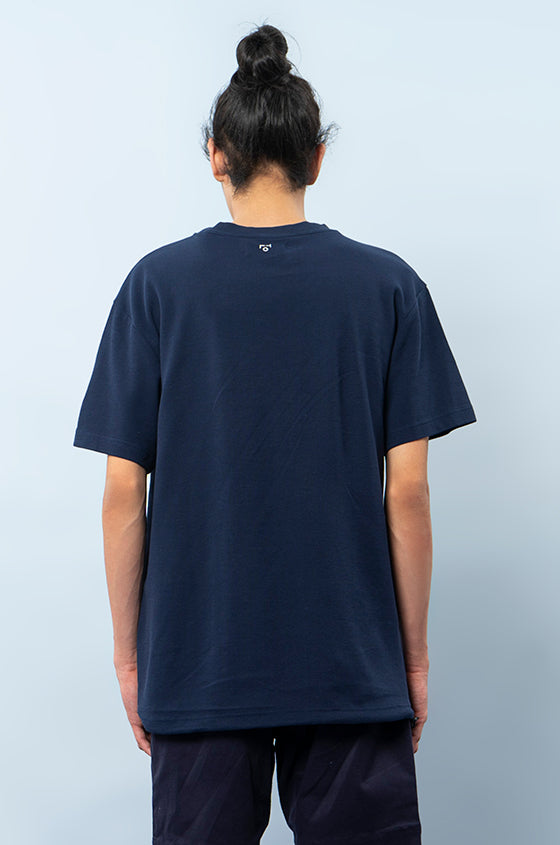 Clean lines and a classic crew neck makes the tee for every guy's wardrobe. Sturdy from the double knit construction but sweat proof to wear all day inside and outside. Perfected with the subtle display of text play. Relaxed Fit
