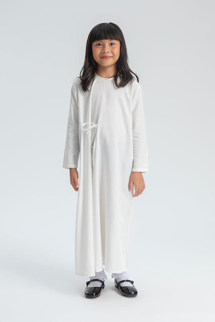 This lightweight kid’s abaya is crafted from soft rayon with a loose, flowing silhouette for ease and comfort. Perfect for Ramadan evenings or Eid celebrations.