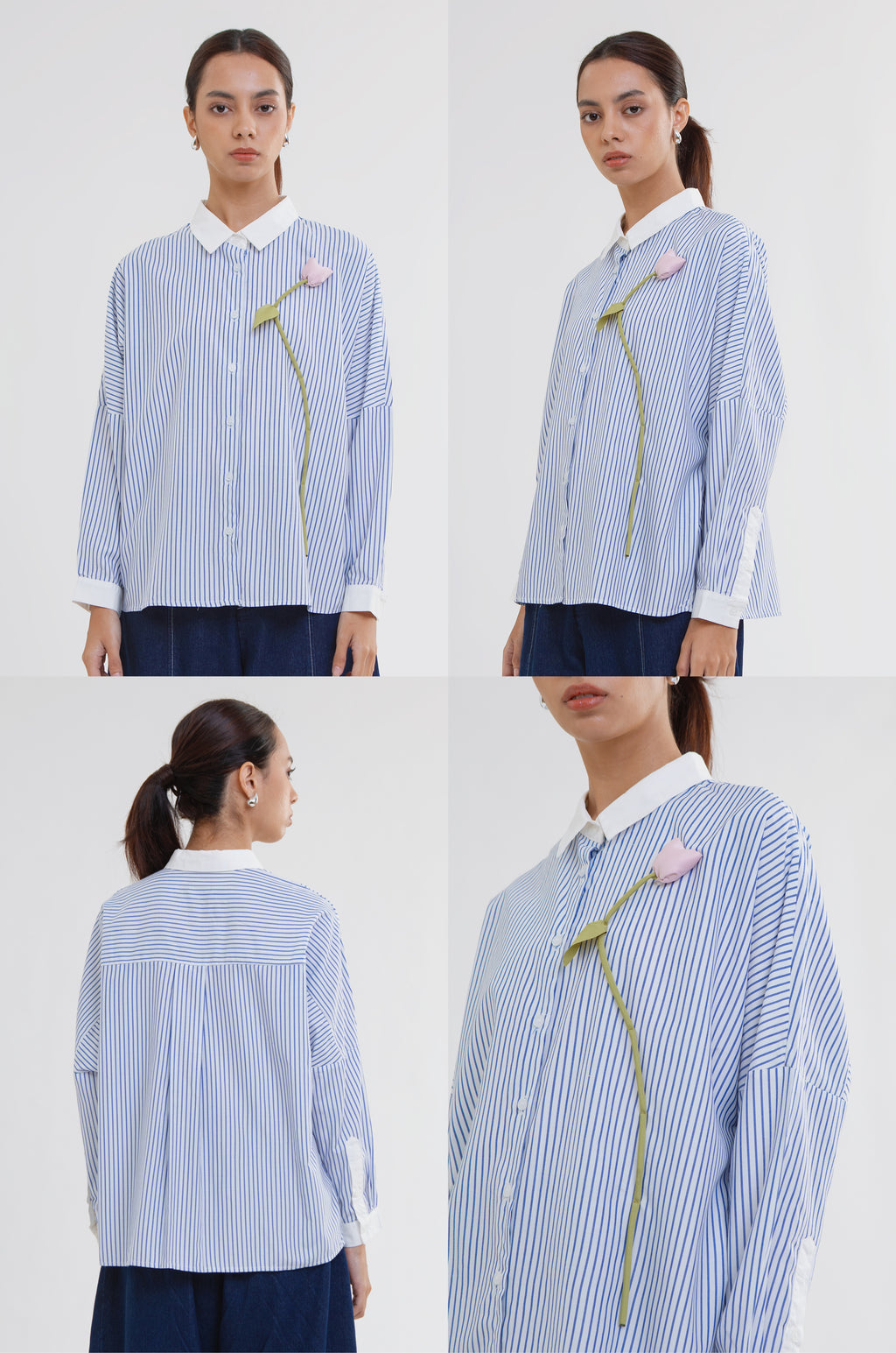 This long-sleeve shirt is designed in an oversized fit that gives classic shirting a contemporary feel. Style it tucked into tailored pants for a sleek 9-to-5 look, or wear it loose over denim for an easy, laid-back look.