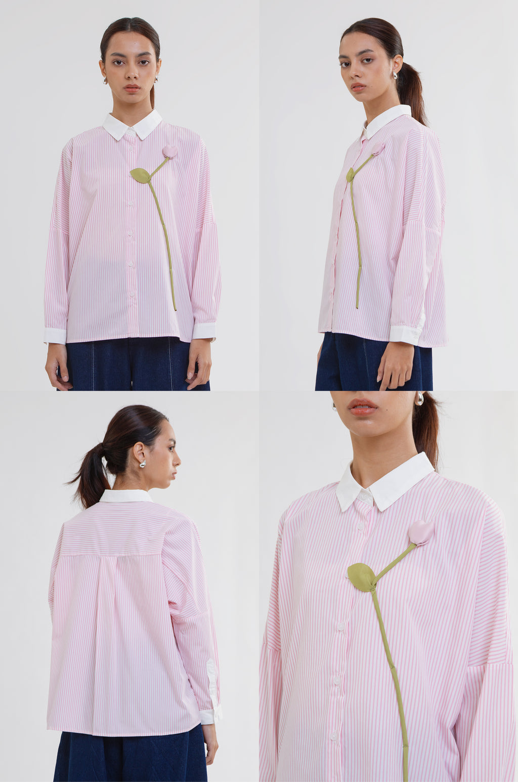 This long-sleeve shirt is designed in an oversized fit that gives classic shirting a contemporary feel. Style it tucked into tailored pants for a sleek 9-to-5 look, or wear it loose over denim for an easy, laid-back look.