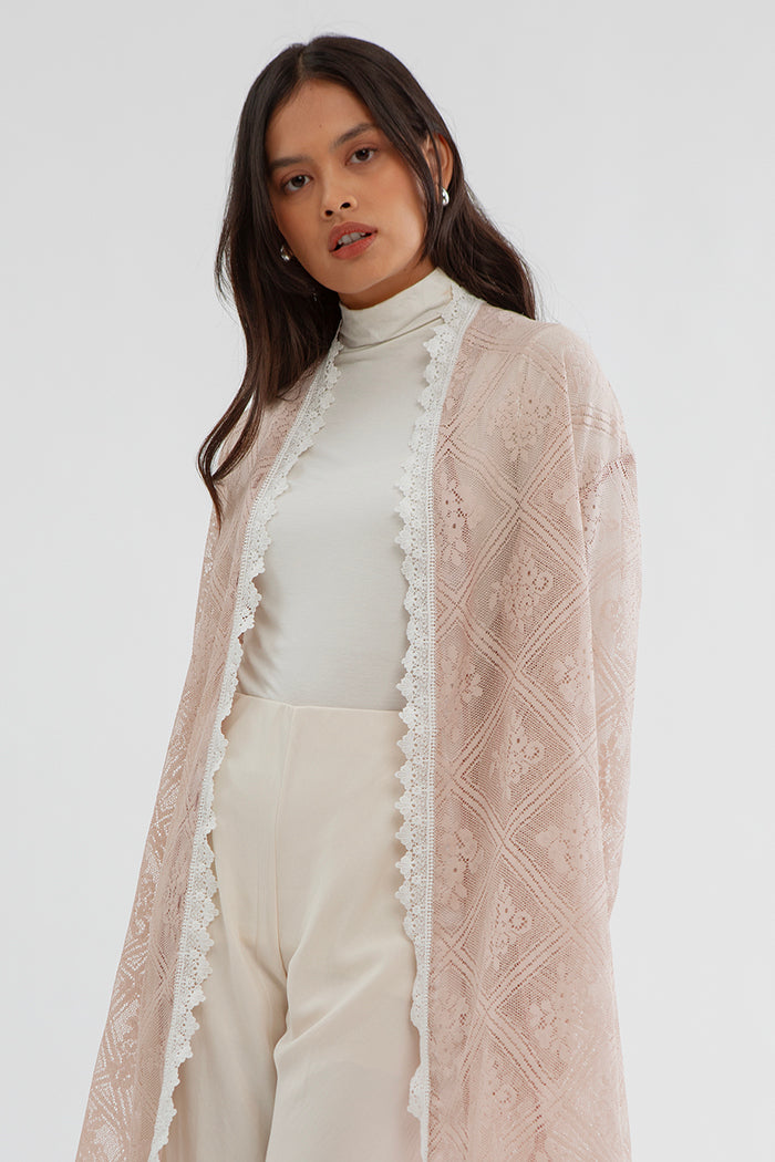 Designed with intricate lace detailing, this maxi outerwear offers effortless elegance and movement. A perfect choice for attending iftar gatherings or Eid celebrations.