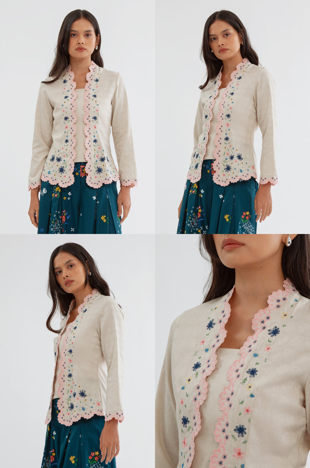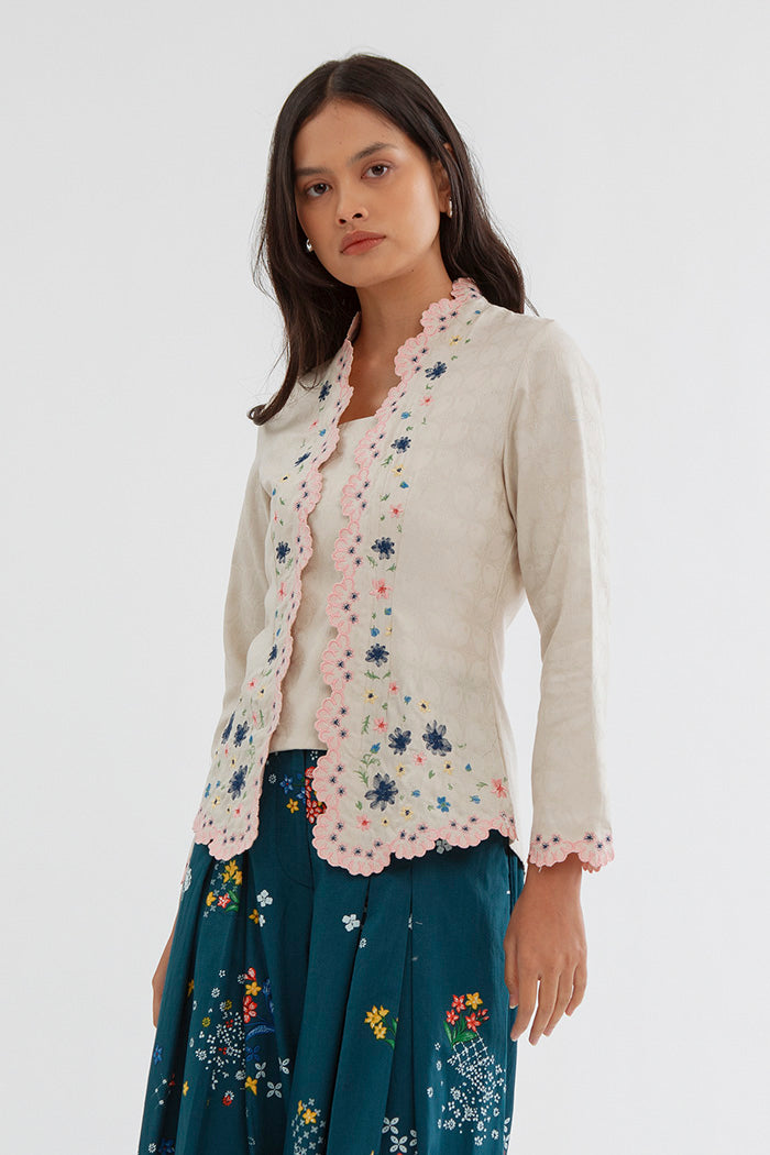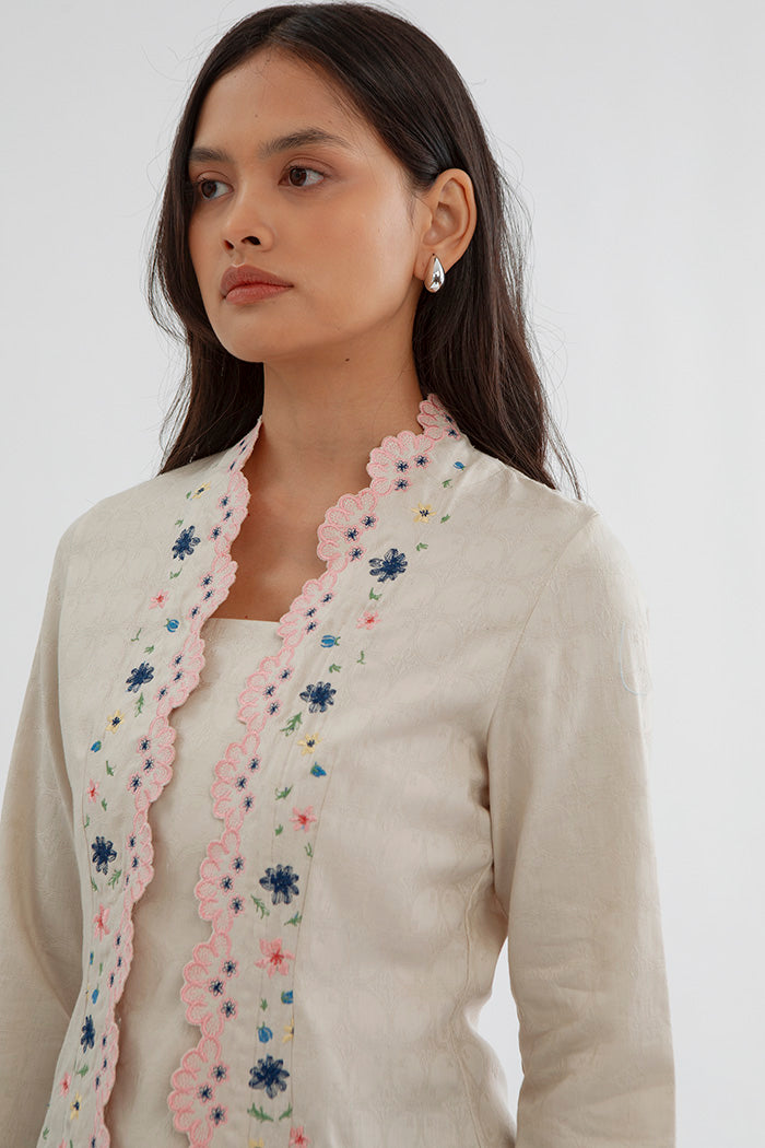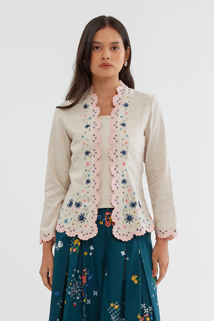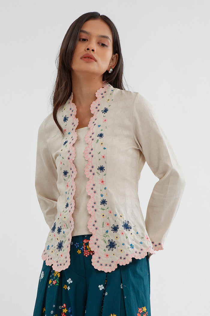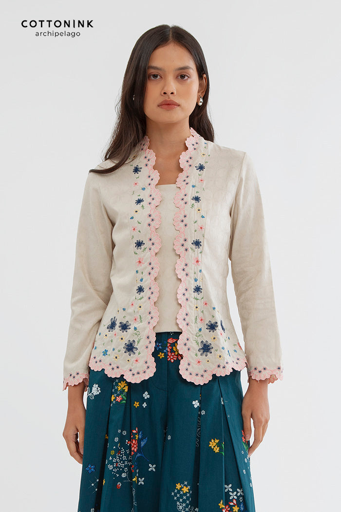This embroidered kebaya is cut from cotton-blend for a regular fit and is designed with a square neckline and scalloped trims. Team it with kain lilit, sandals and your favorite jewelry.