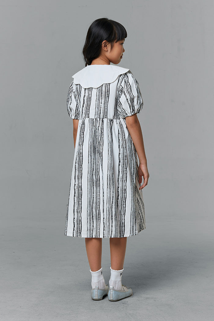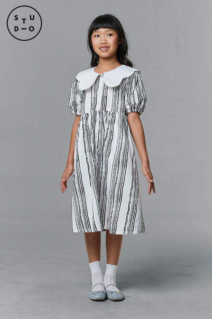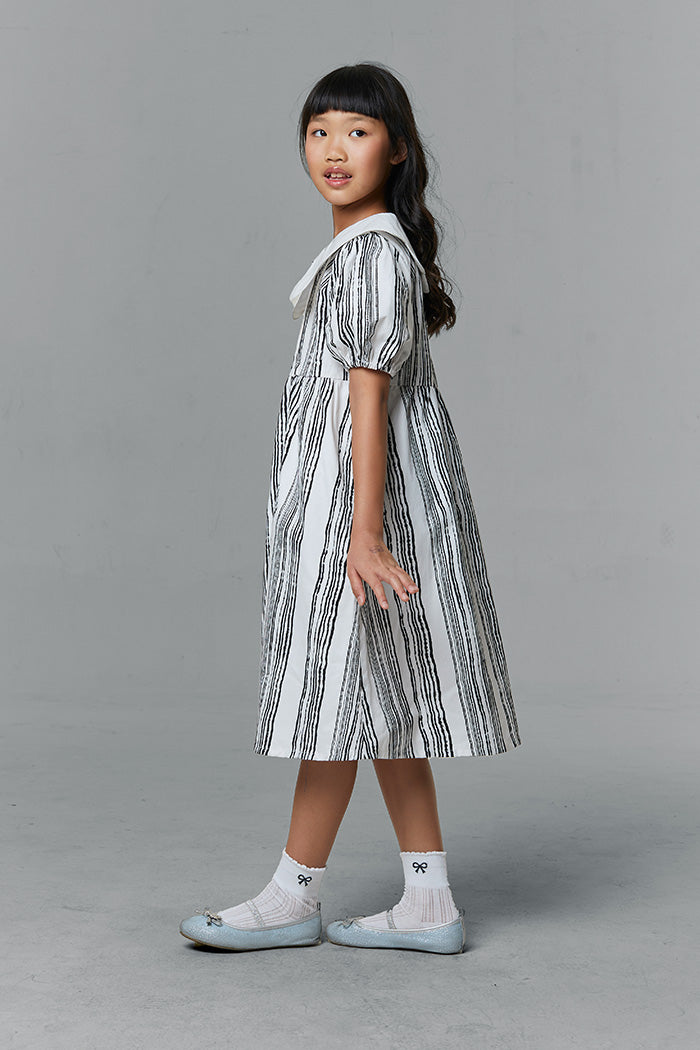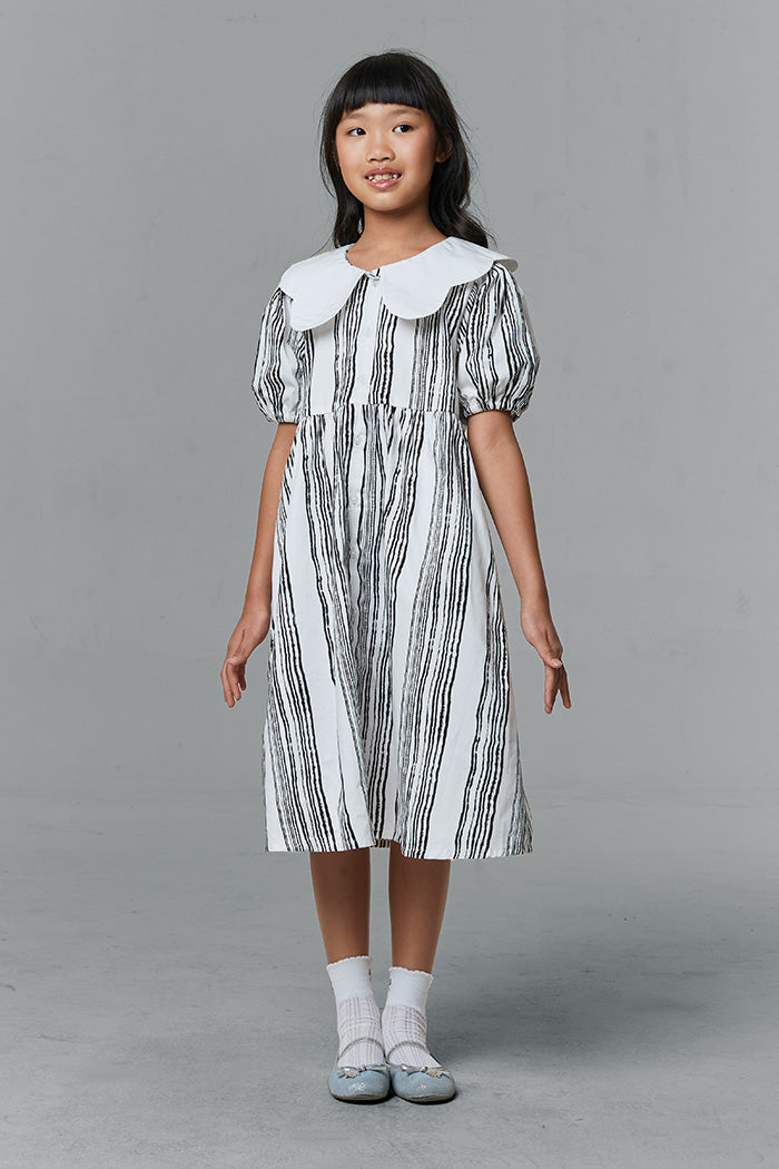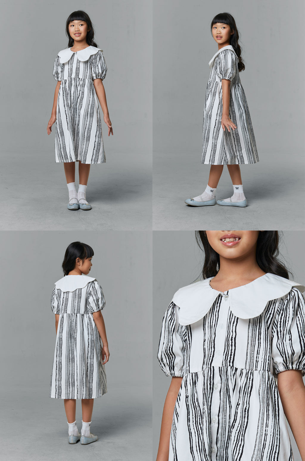 Dress your mini one in this classic, girly dress and be ready to capture lasting memories at Christmas family gathering. Features puffy sleeves, an oversized collar, a flared silhouette, and a button up opening.