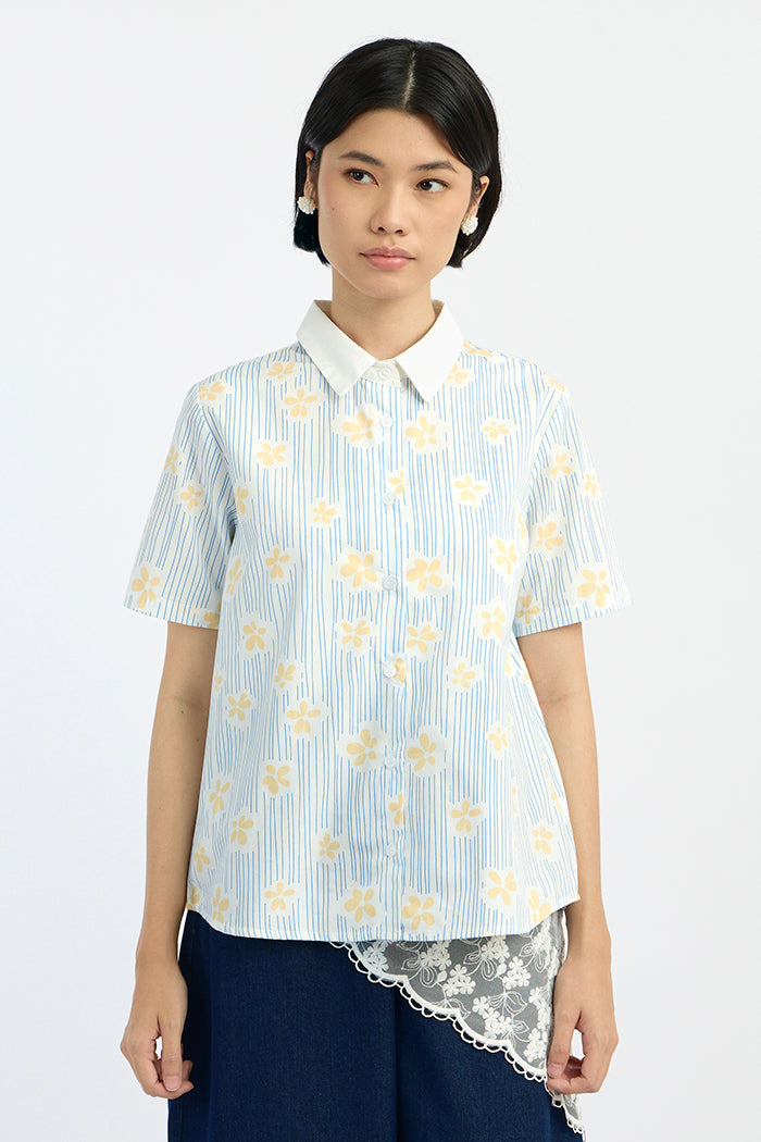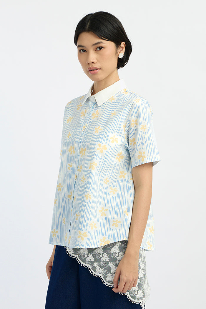 Cut from breathable cotton, this short sleeve shirt is designed in a boxy shape that offers a laid-back yet polished look.