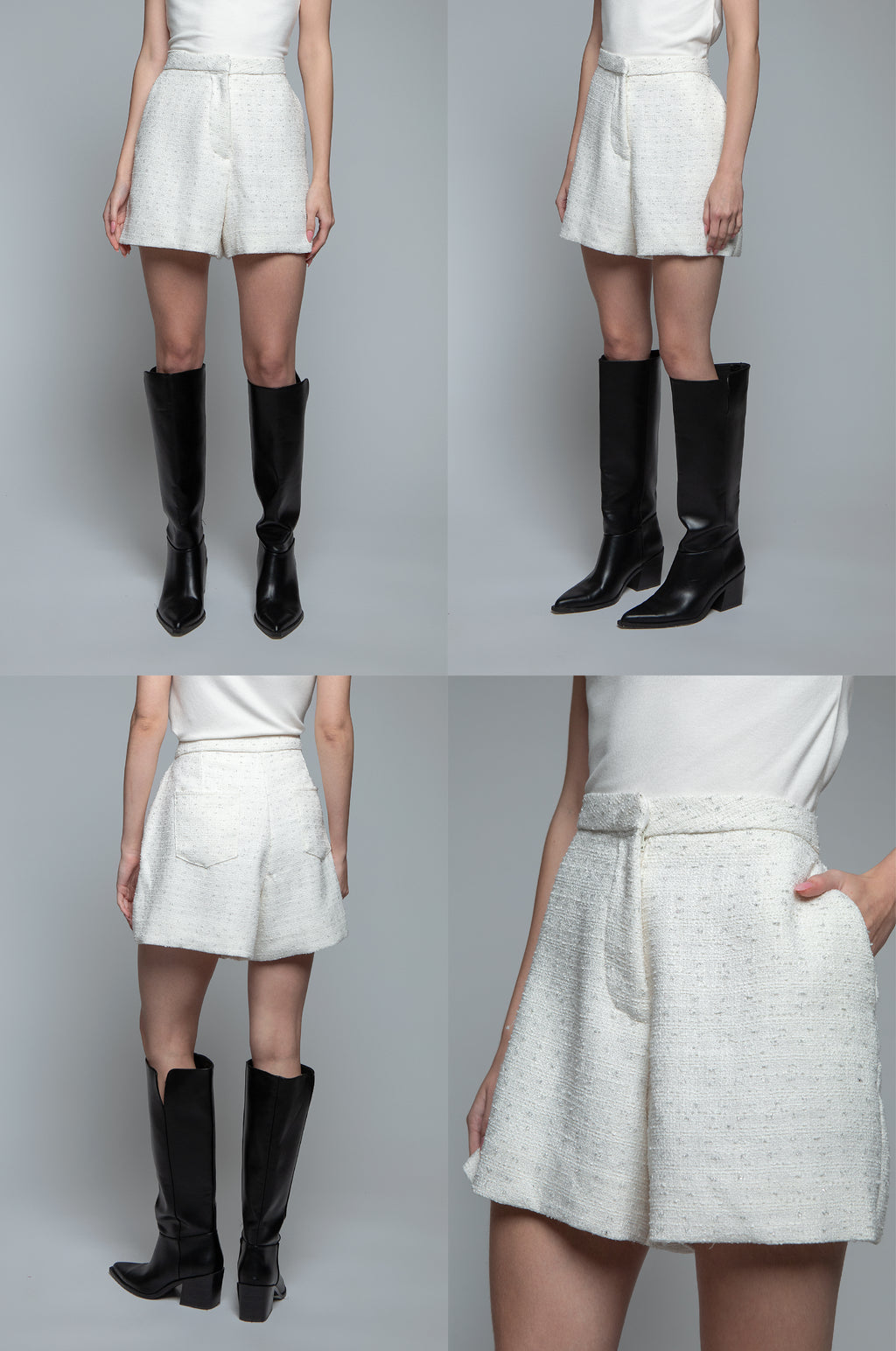 Smart and stylish, these tweed shorts are cut with a high-rise waist and a relaxed leg. These pants are perfect for daytime looks or layered with the matching tweed jackat for a more polished outfit.