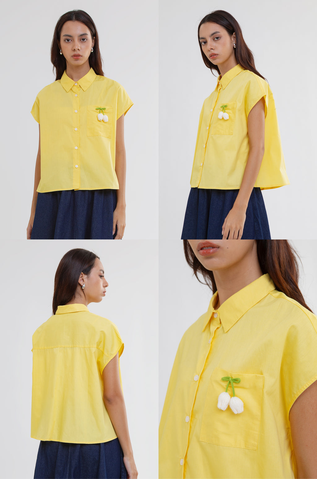 This cap-sleeve shirt features a flared hem for a relaxed, breezy silhouette. Lightweight and comfortable, this cotton-made shirt is perfect for warmer days ahead.