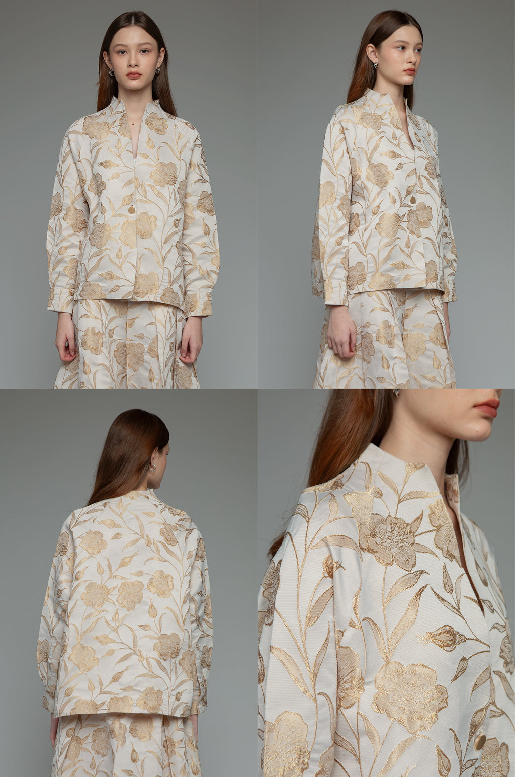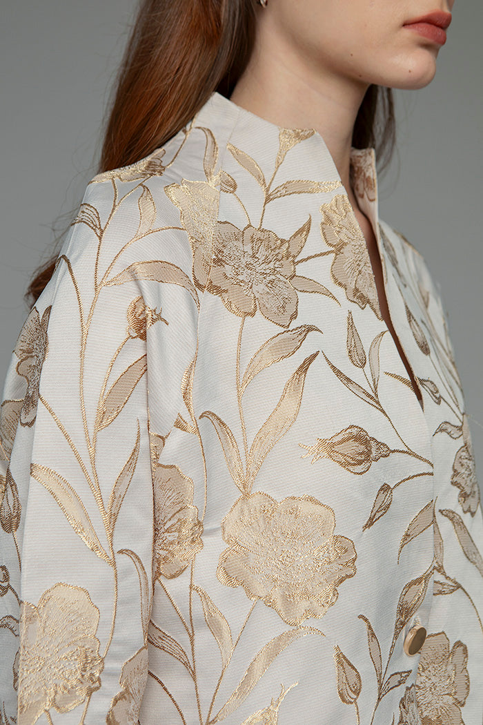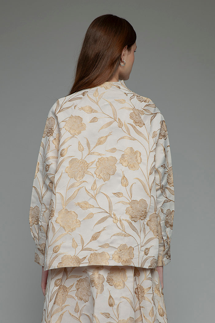 Softly structured and effortlessly elegant, this oversized outerwear piece features a high neckline and voluminous sleeves. A versatile layer that elevates dresses or tailored separates for polished Ramadan looks.