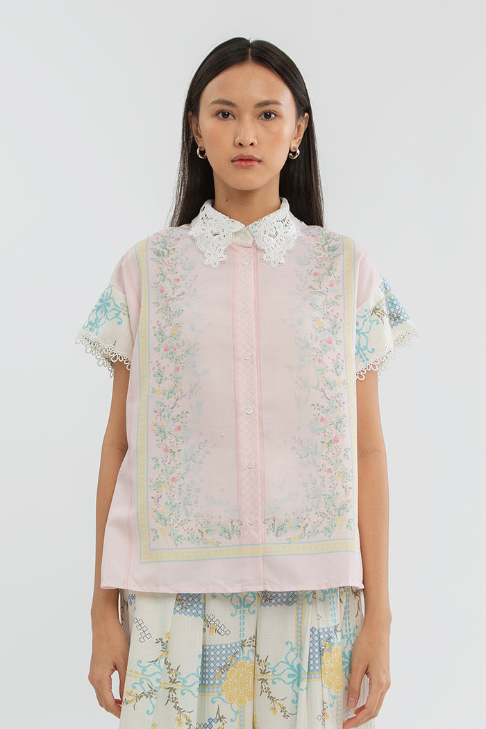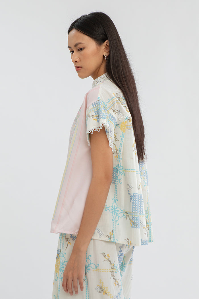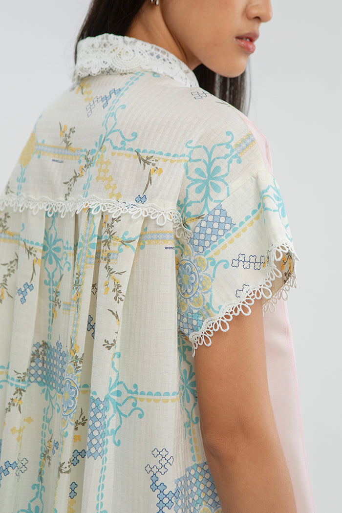 Crafted from cotton, this short sleeve shirt is accented with boxpleats at the back, bringing a modern romantic touch to Hari Raya dressing.