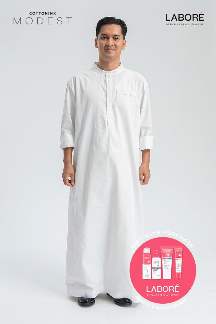 A classic men’s thobe crafted from lightweight, breathable cotton for comfort and style. Perfect for Ramadan prayers, family iftars, or Eid celebrations.