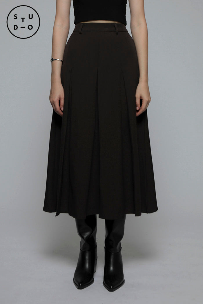 This maxi skirt is defined by its box pleats that introduce soft volume and structure to your everyday look.
