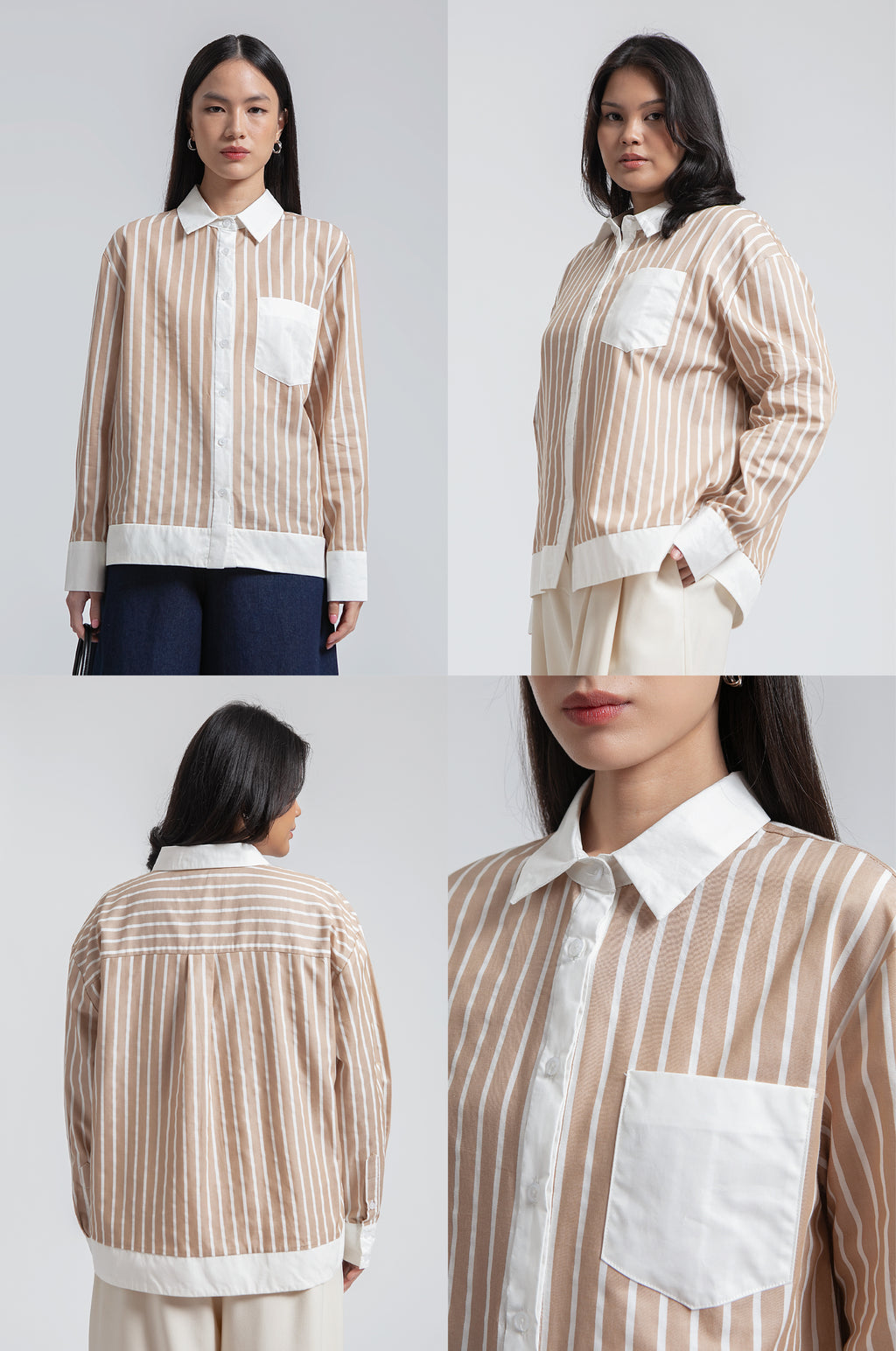 Cut from cotton, this striped shirt is designed with a clean silhouette and exaggerated cuffs for a subtle statement.