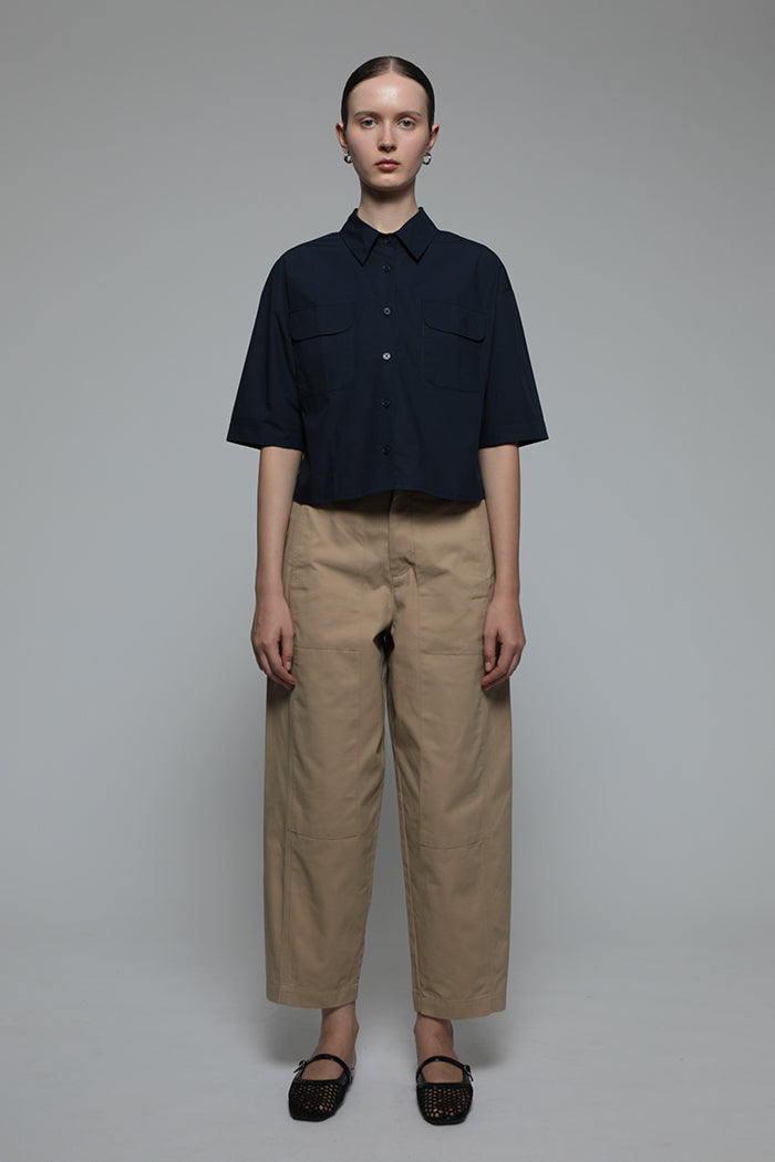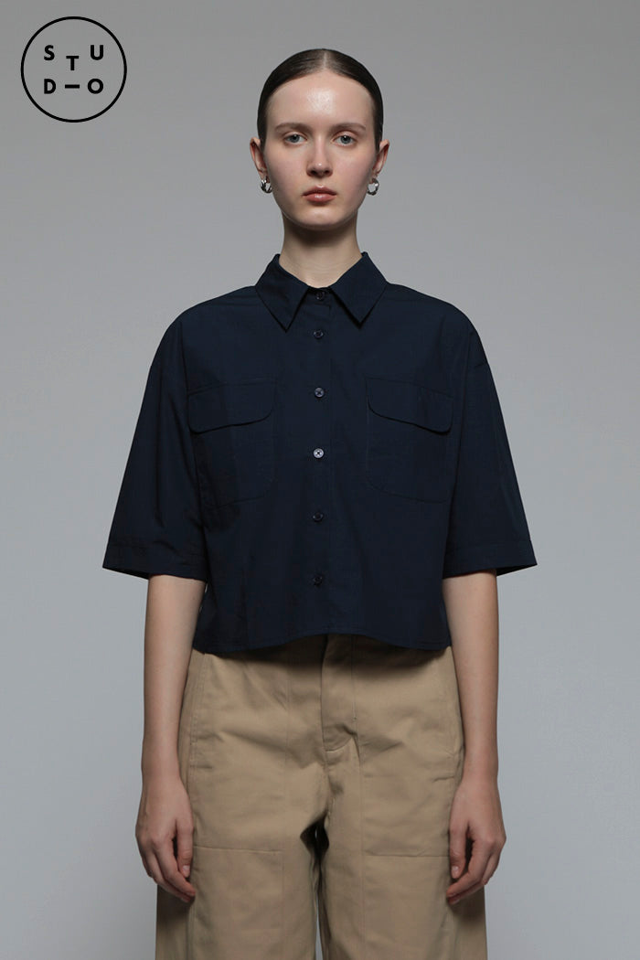This shirt is cut from lightweight cotton for a boxy fit. Designed with boxy sleeves and two front pockets, we love wearing it with blue jeans and sneakers.