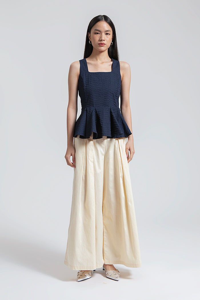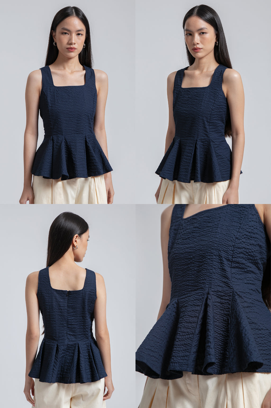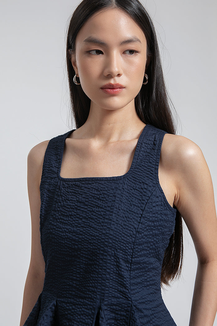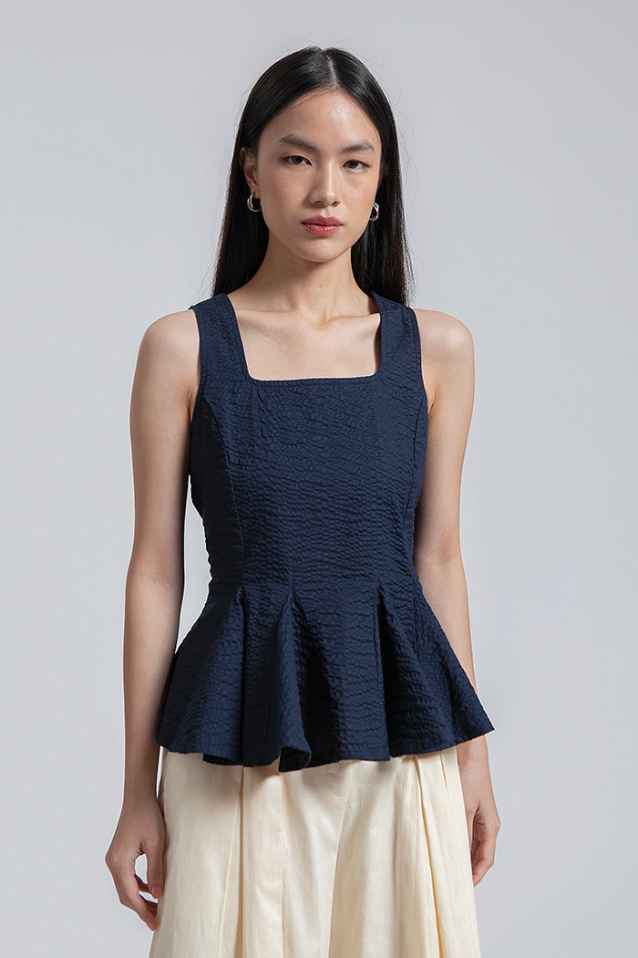 This sleeveless seersucker top features a fitted bodice that flares gently at the hem for a soft, structured look. Wear yours with a pair of fitted pants to balance the proportion.