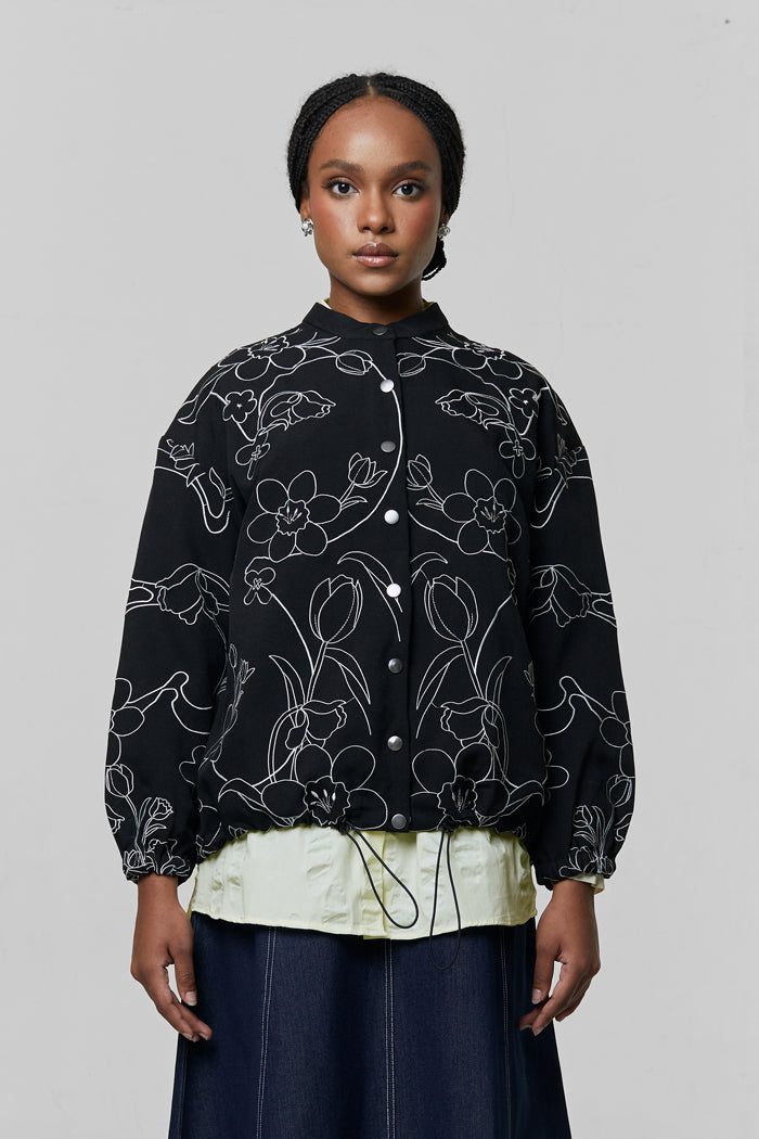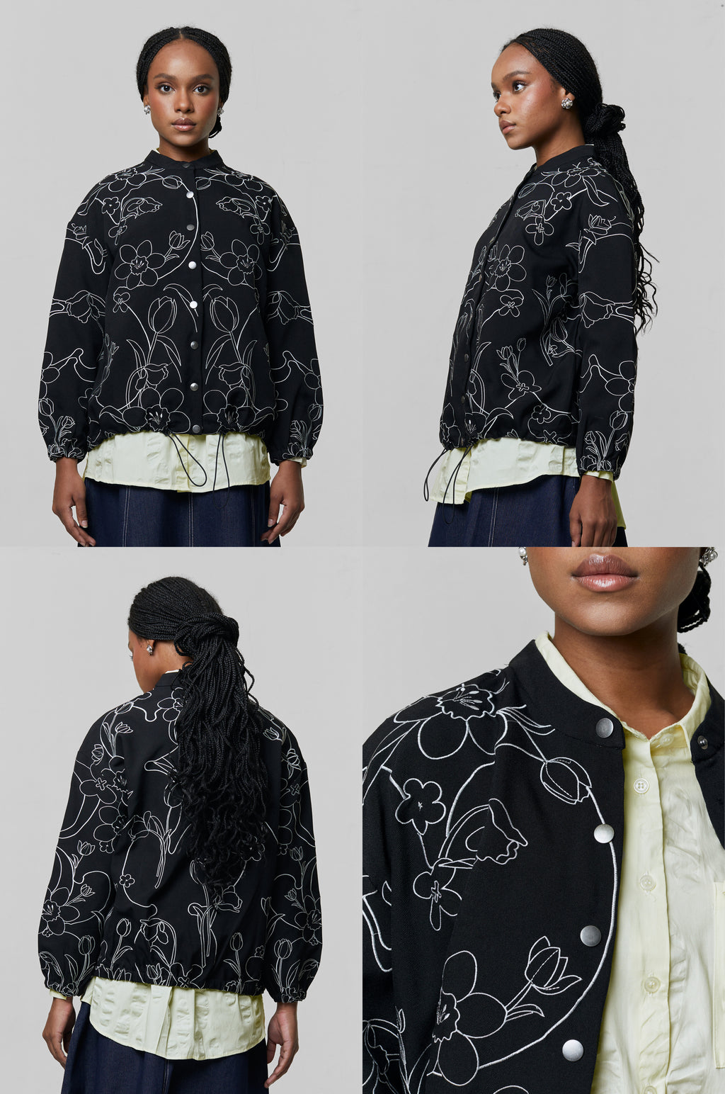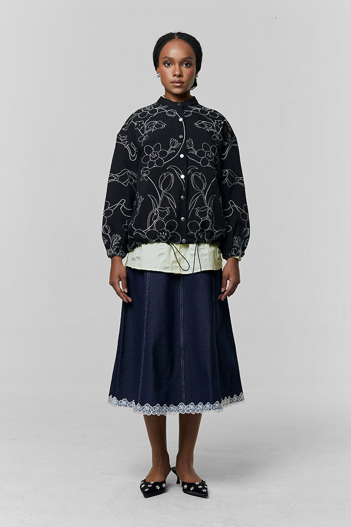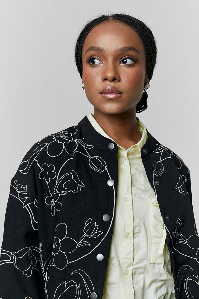 This jacket puts a romantic spin on a timeless staple. Cut from lightweight fabric in a cropped silhouette, it’s detailed with delicate floral embroidery that softens the sharp lines of its boxy shape.