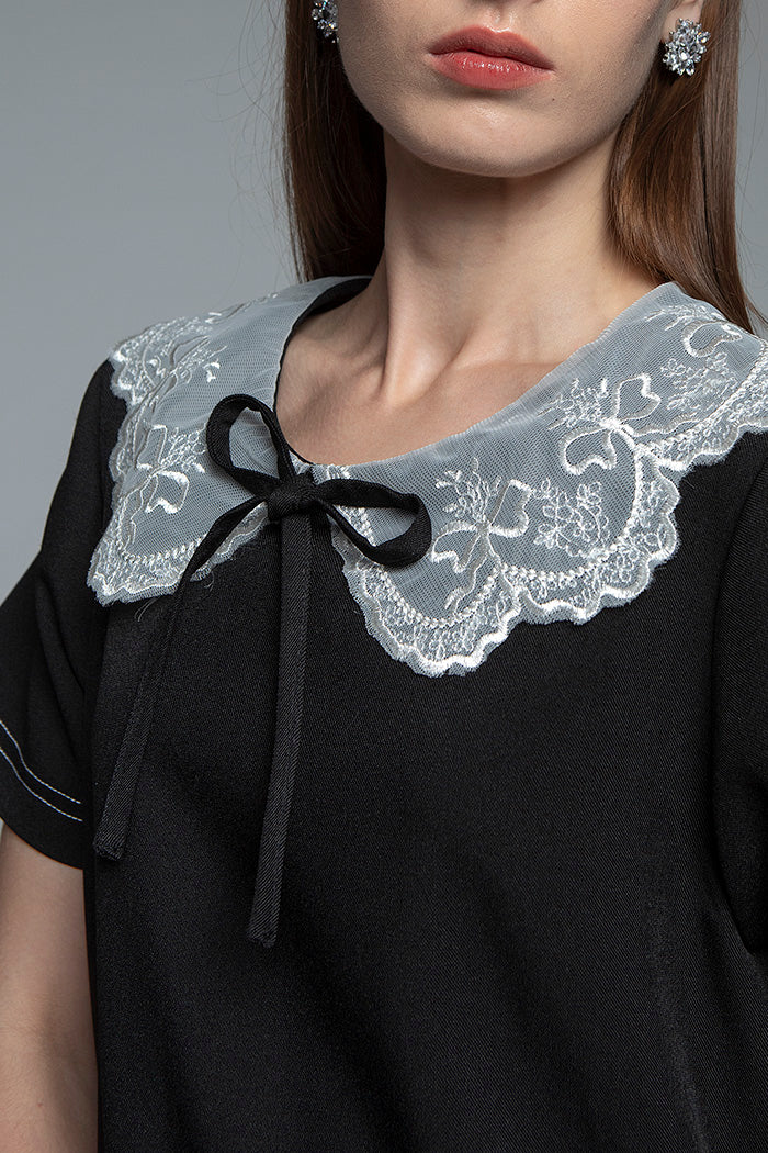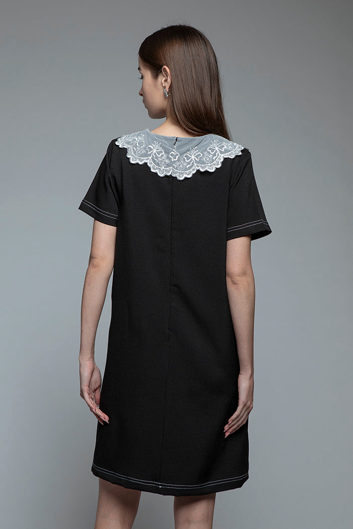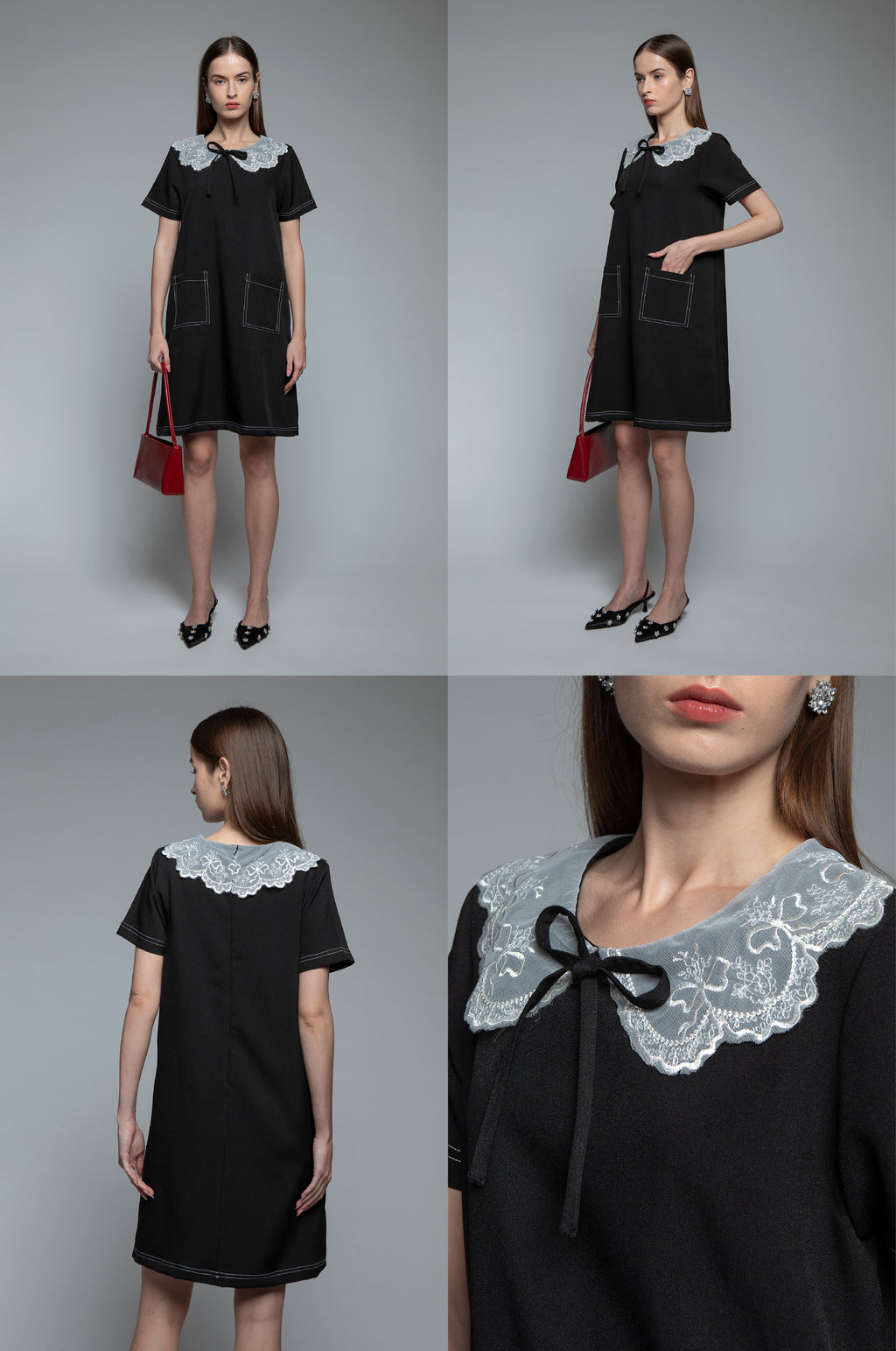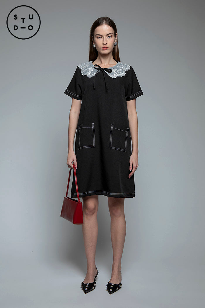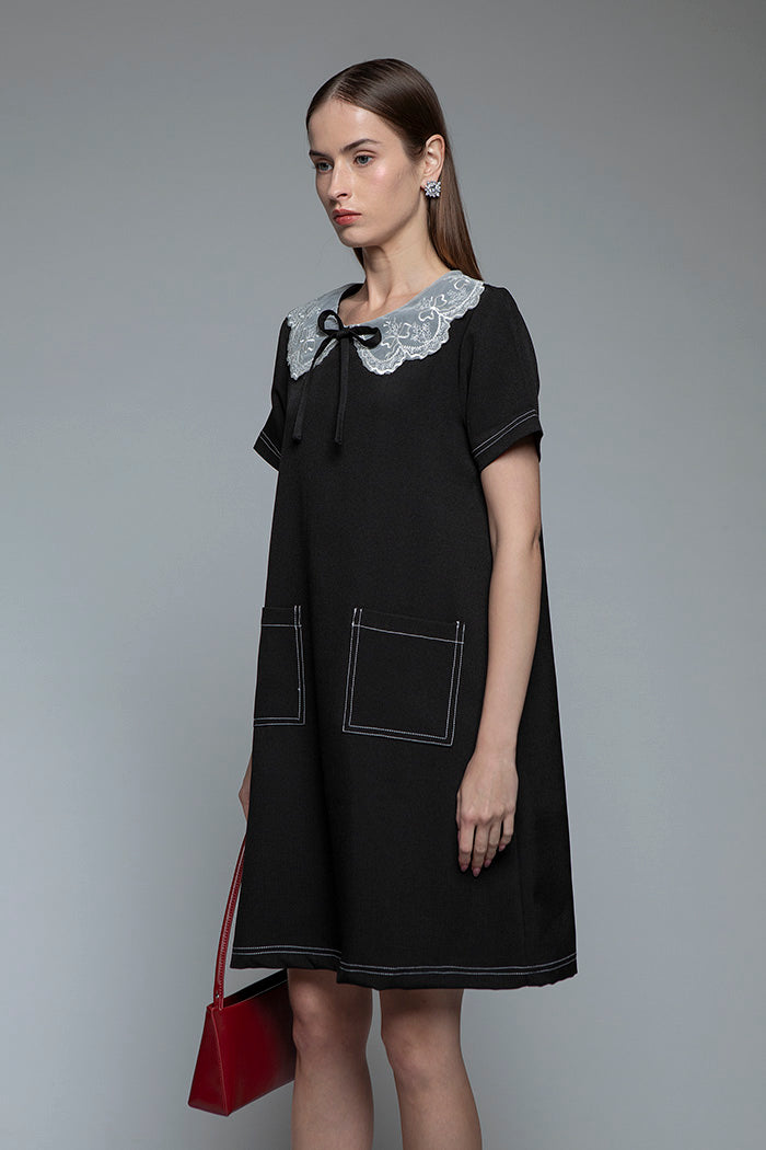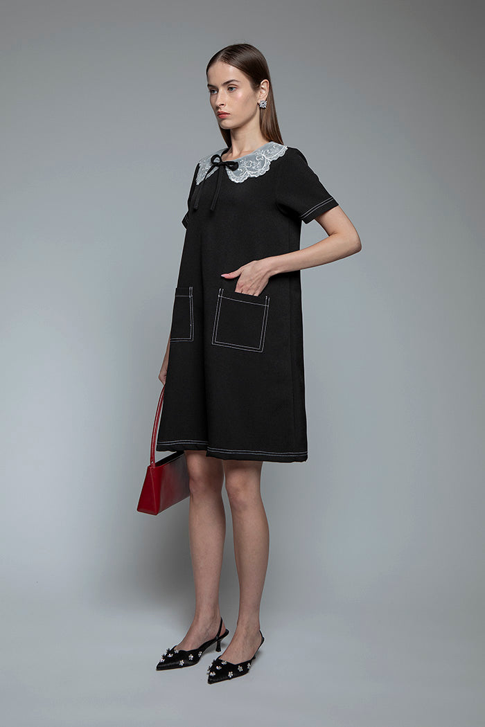 Cut in a relaxed, boxy shape, this dress falls above the knee. The embroidered collar adds a touch of femininity, while the two front pockets offer a practical, contemporary element.