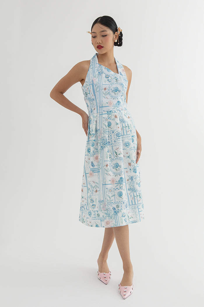 Designed with a halter neck and midi length, this dress blends elegance with ease. Its fit-and-flare silhouette makes it perfect to wear to events when you feel like showing up in something extra.