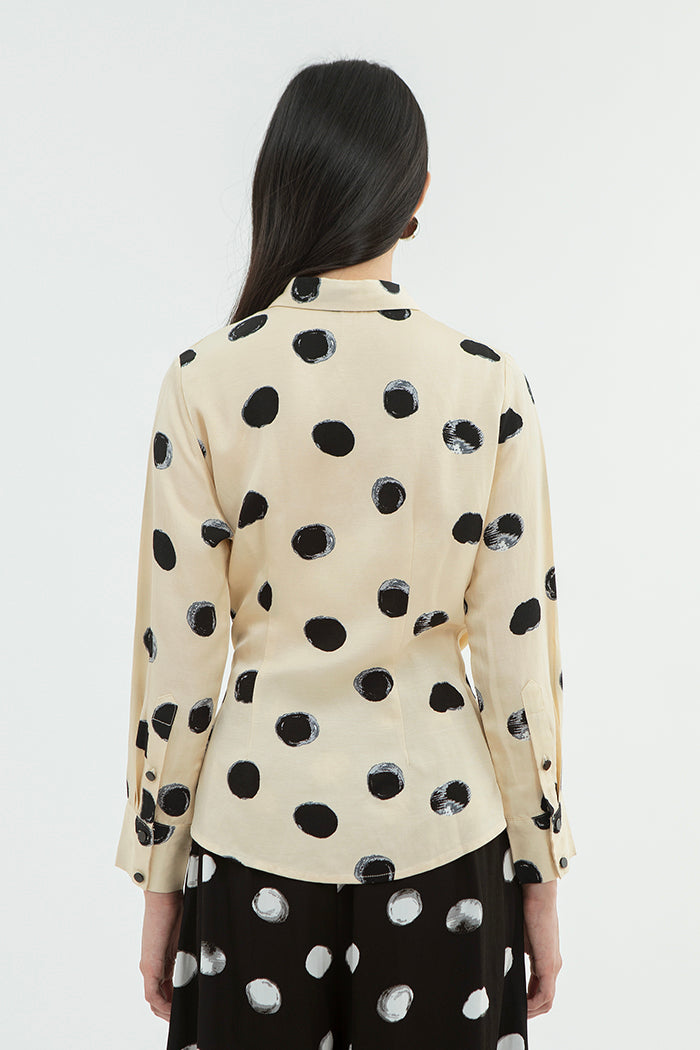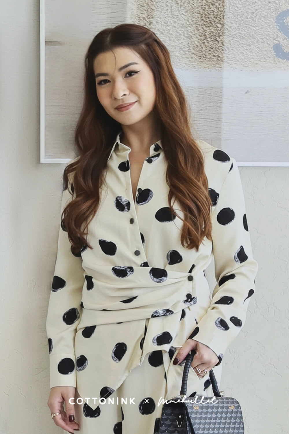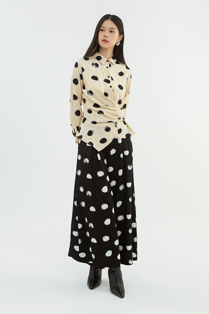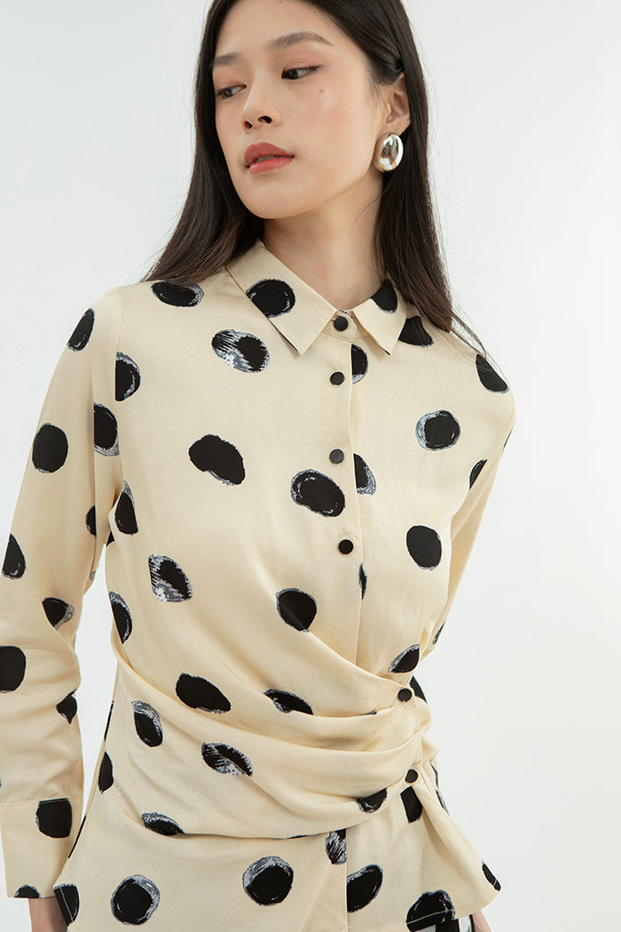 This long-sleeve shirt features a one-sided draped front, creating an elegant asymmetrical silhouette. Crafted from breathable viscose blend fabric, this item is definitely a standout piece you'll love for many years to come.