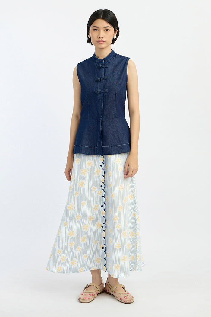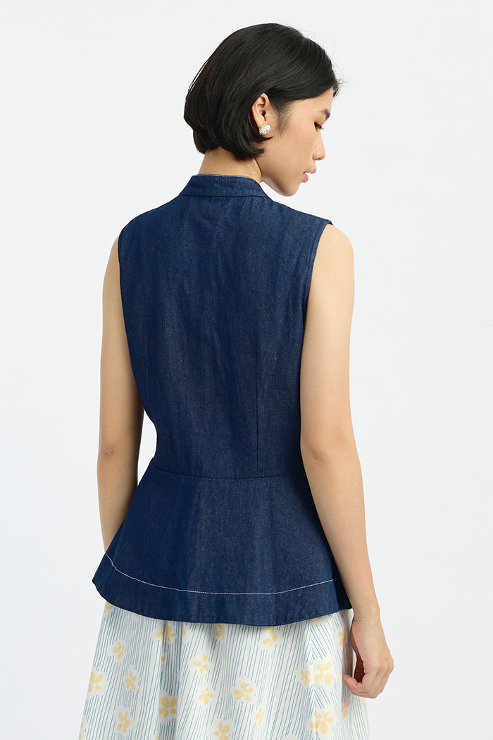 This sleeveless top is designed with a structured bodice and peplum hem that adds volume to your look. Wear yours with a pair of straight pants to balance the silhouette.