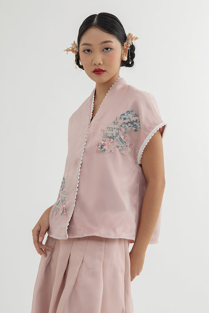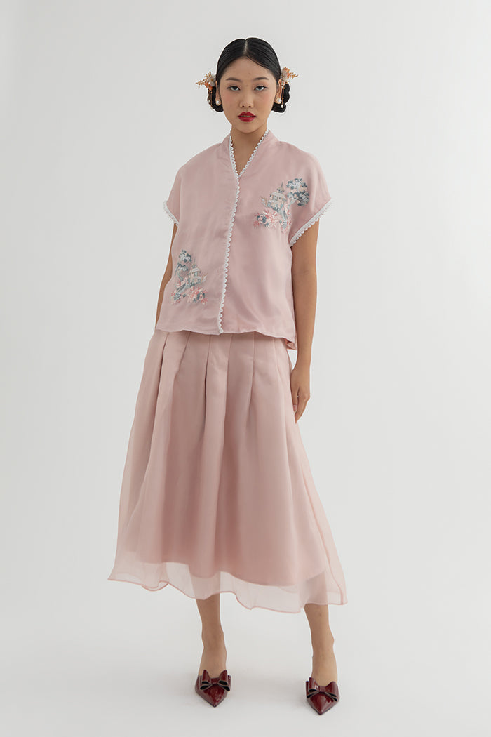 This sleeveless organza top brings a touch of elegance to Chinese New Year dressing. The translucent fabric catches the light beautifully, giving a subtle shimmer that feels celebratory. Wear yours with anything from high-waisted pants to midi skirts.
