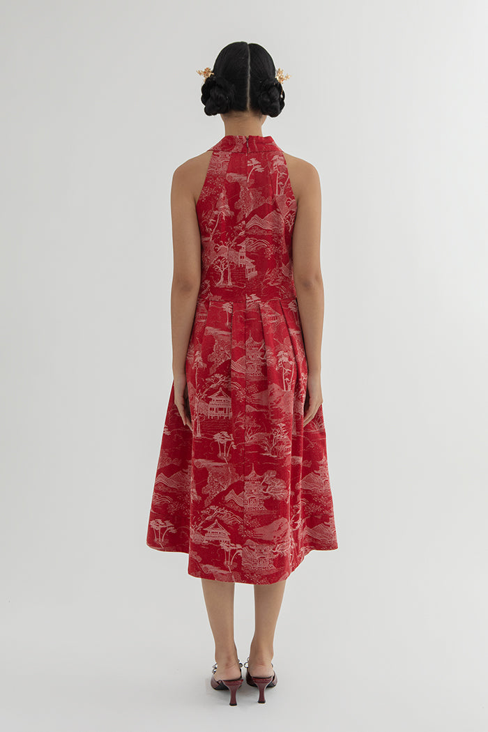 Designed with a halter neck and midi length, this dress blends elegance with ease. Its fit-and-flare silhouette makes it perfect to wear to events when you feel like showing up in something extra.