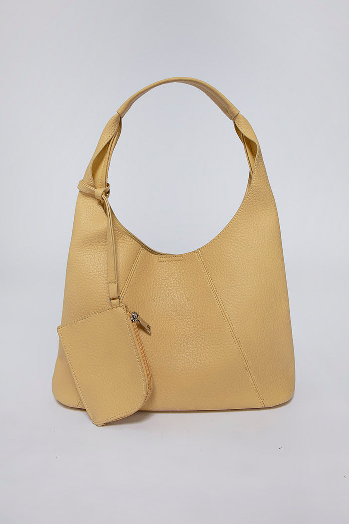 This slouchy hobo bag crafted from smooth faux leather offers roomy interior that makes it the perfect everyday companion.
