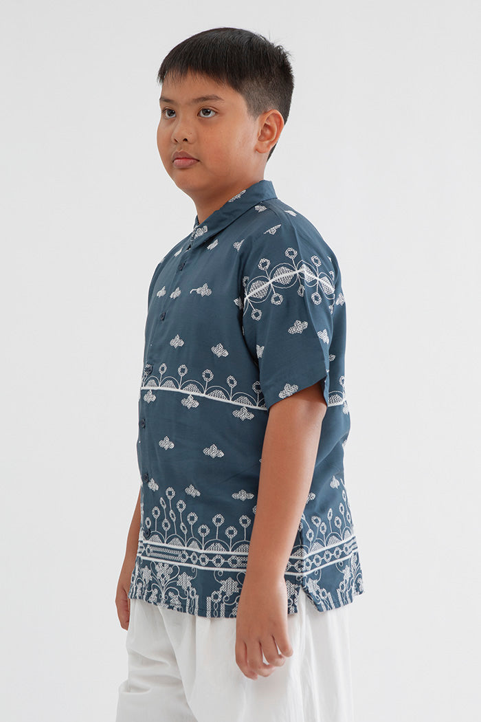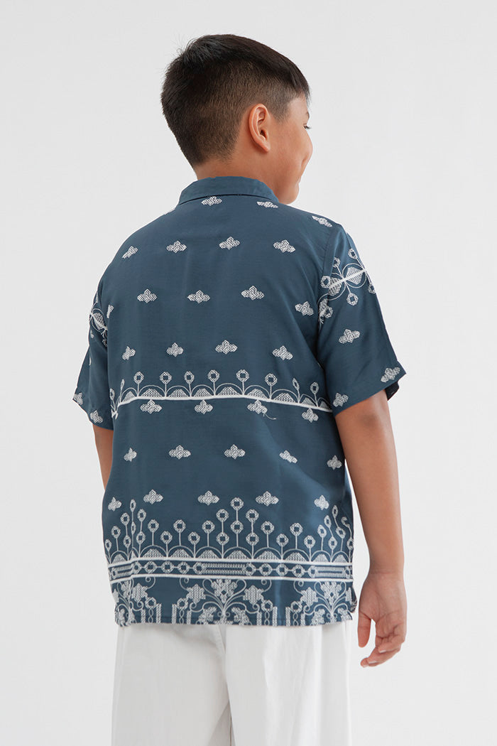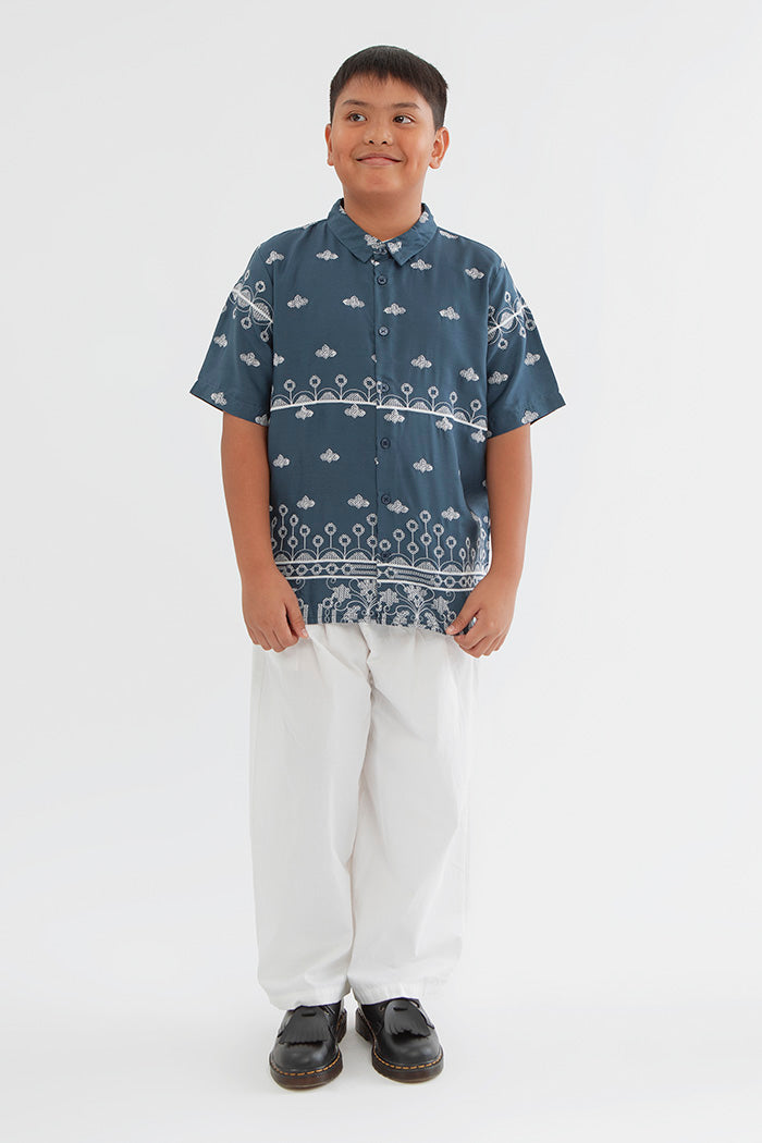 The printed shirt that compliments your little one's wardrobe for special occasions. Has a regular fit, a regular collar and front button opening.