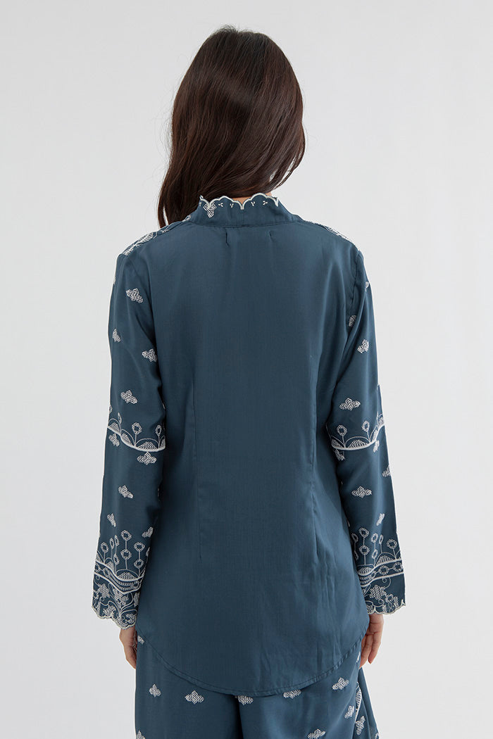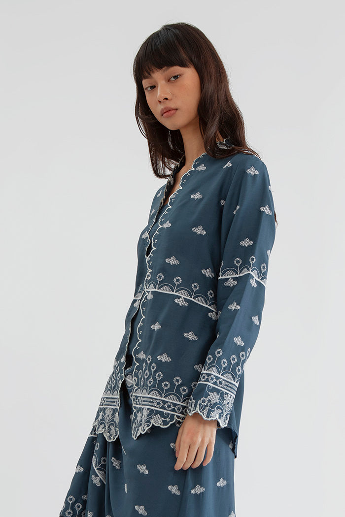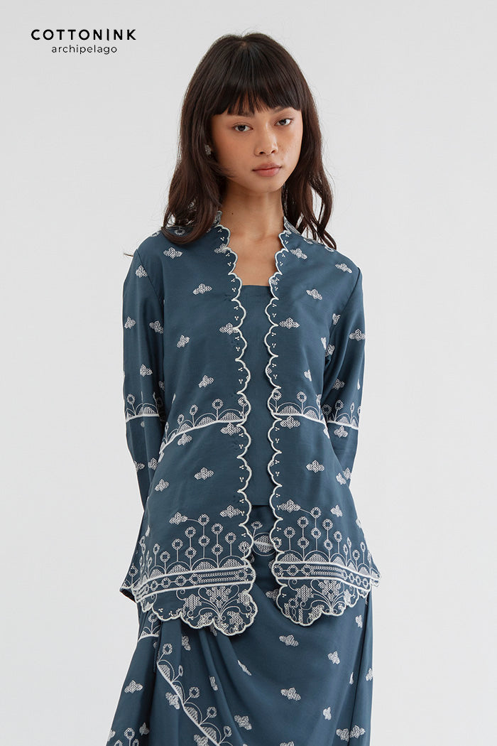 This embroidered kebaya is cut from Tencel for a regular fit and is designed with a square neckline and scalloped trims. Team it with kain lilit, sandals and your favorite jewelry.