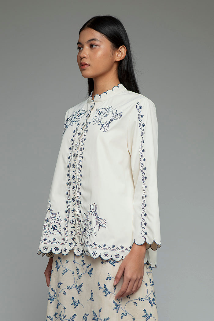 Delicate embroidery meets a boxy silhouette in this timeless long-sleeve shirt. Crafted for a modest-friendly fit, this top is the perfect pair to your favorite wide leg pants and pretty sandals.