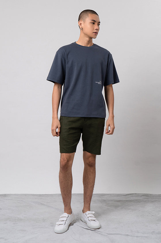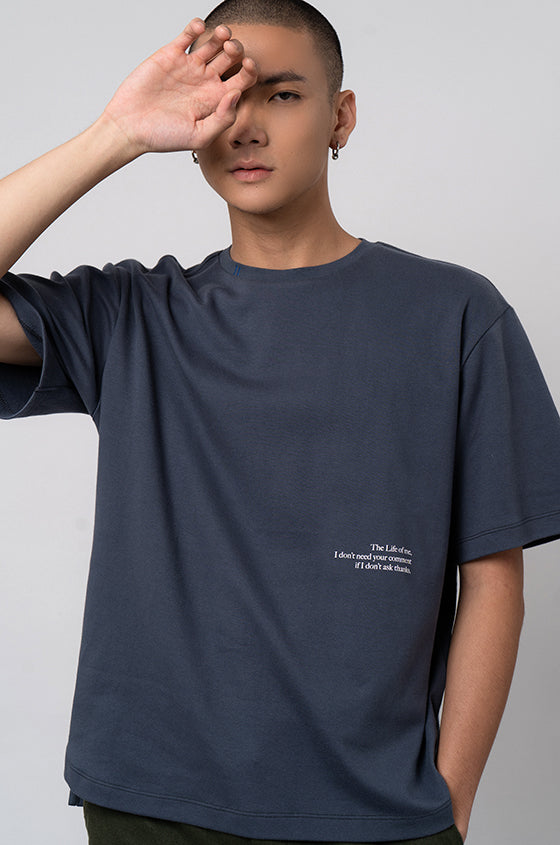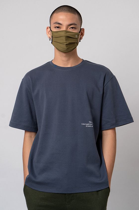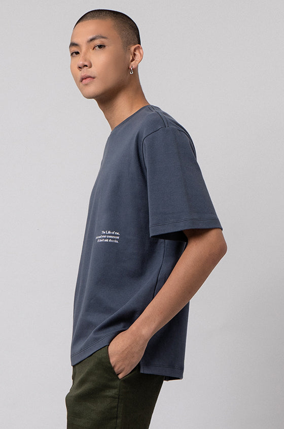 Clean lines and a classic crew neck makes the tee for every guy's wardrobe. Sturdy from the double knit construction but sweat proof to wear all day inside and outside. Perfected with the subtle display of text play.
