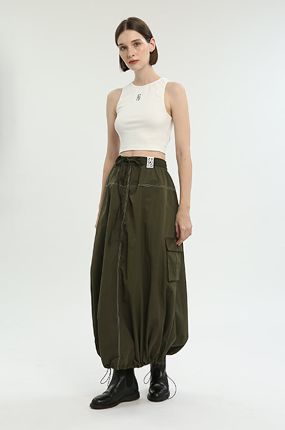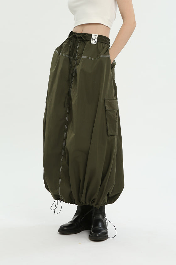 Switch up your daily 'fit with this skirt. It's easy to style, while its pocket detail adds an extra edge to your look. Complete this effortlessly cool vibe with a crop top, sneakers and a faux leather jacket. Features side pockets, drawstring details and elastic waist.