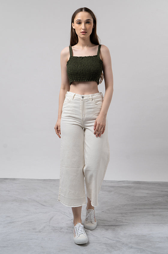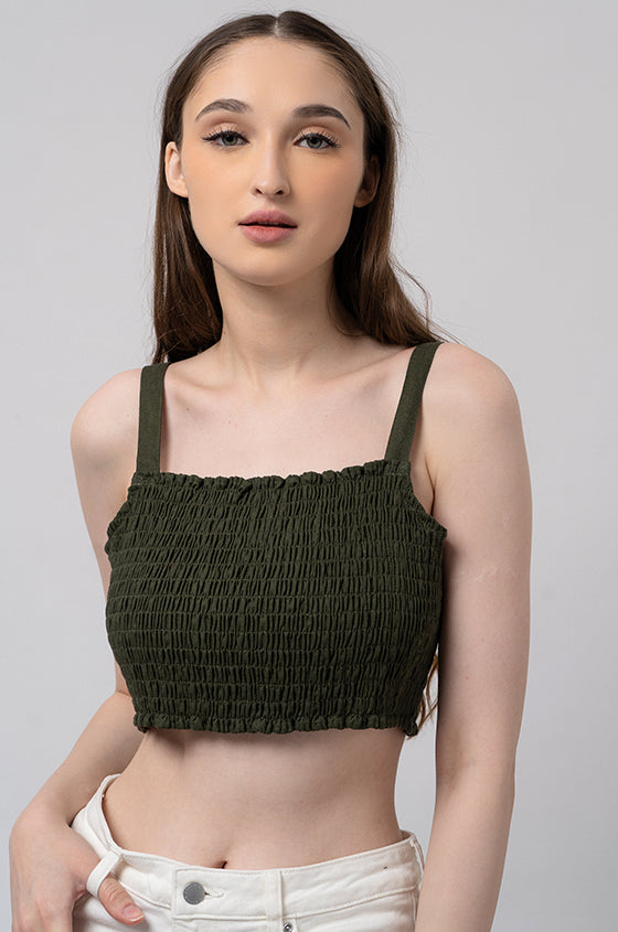 Jump in the trend with smocked top in a cropped silhouette. Square neckline. Close fit. Wear yours with the coordinating shorts: Military Nantes.