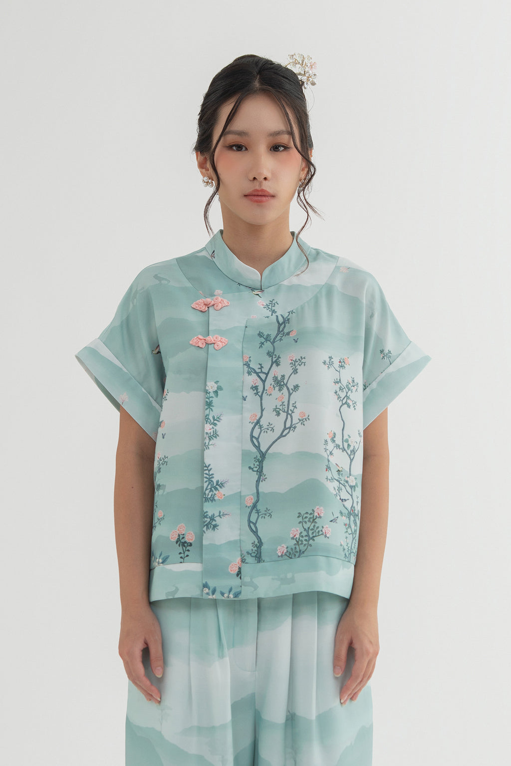 Chinese New Year is the perfect excuse to show up in wearable art. Designed with a boxy fit and button up opening in the front, wear yours with a flared pants and heeled sandals.