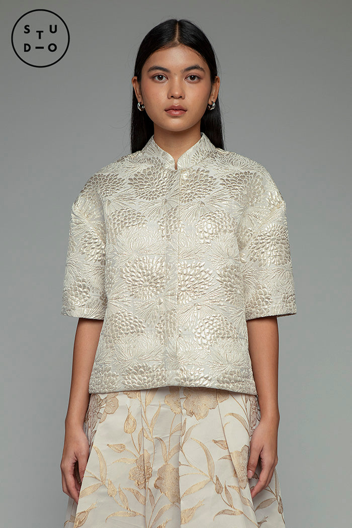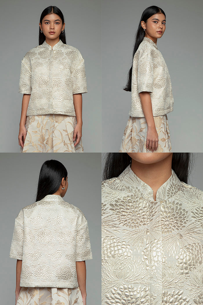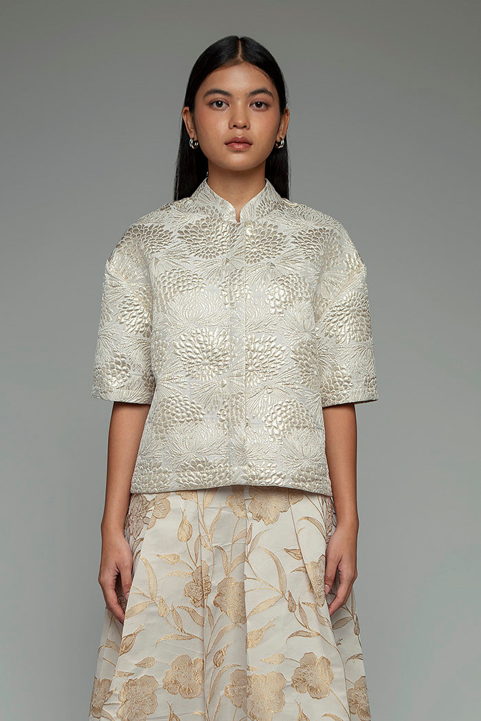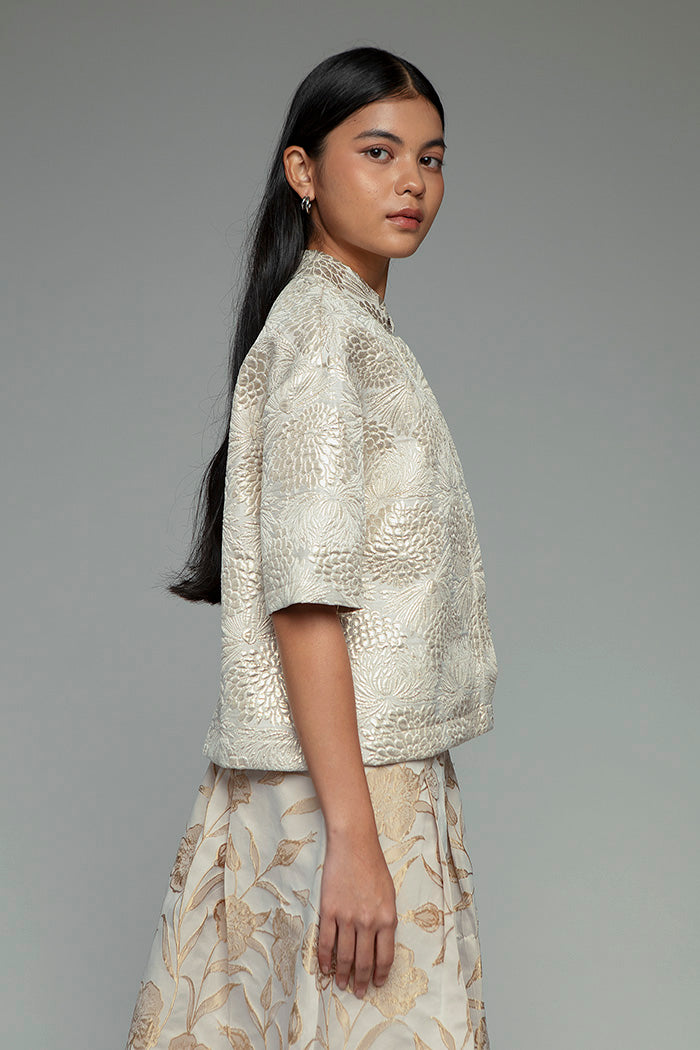 This jacquard top is designed with a boxy and slighly cropped silhouette, giving it a modest-friendly look that’s flattering and easy to wear. The textured fabric adds a hint of festive shine, making it perfect for a festive celebration.