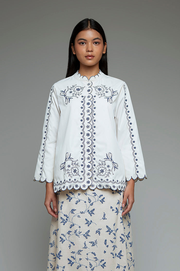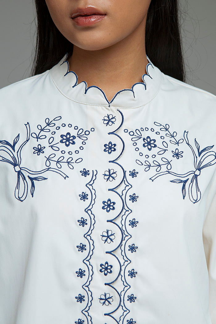 Delicate embroidery meets a boxy silhouette in this timeless long-sleeve shirt. Crafted for a modest-friendly fit, this top is the perfect pair to your favorite wide leg pants and pretty sandals.
