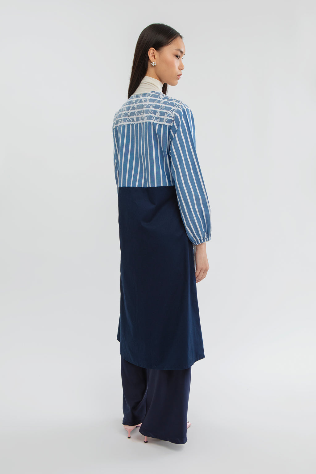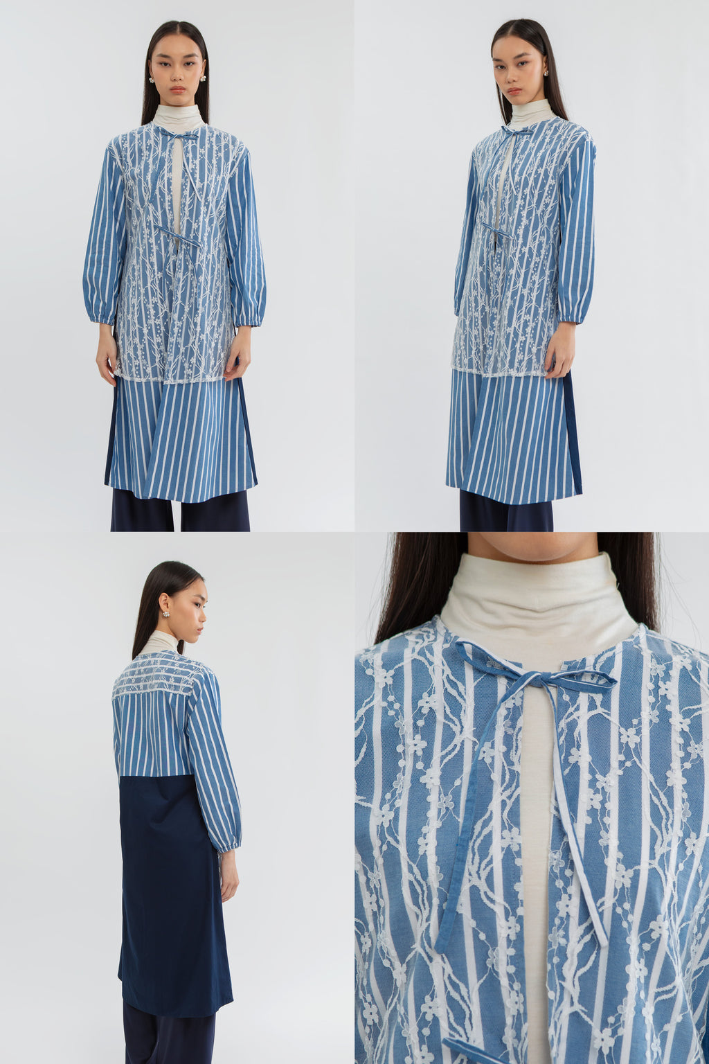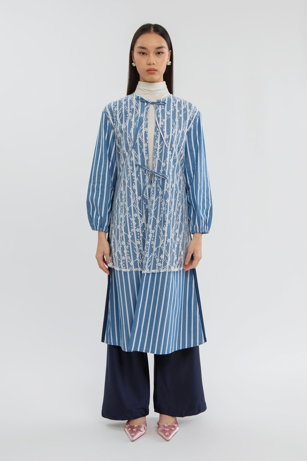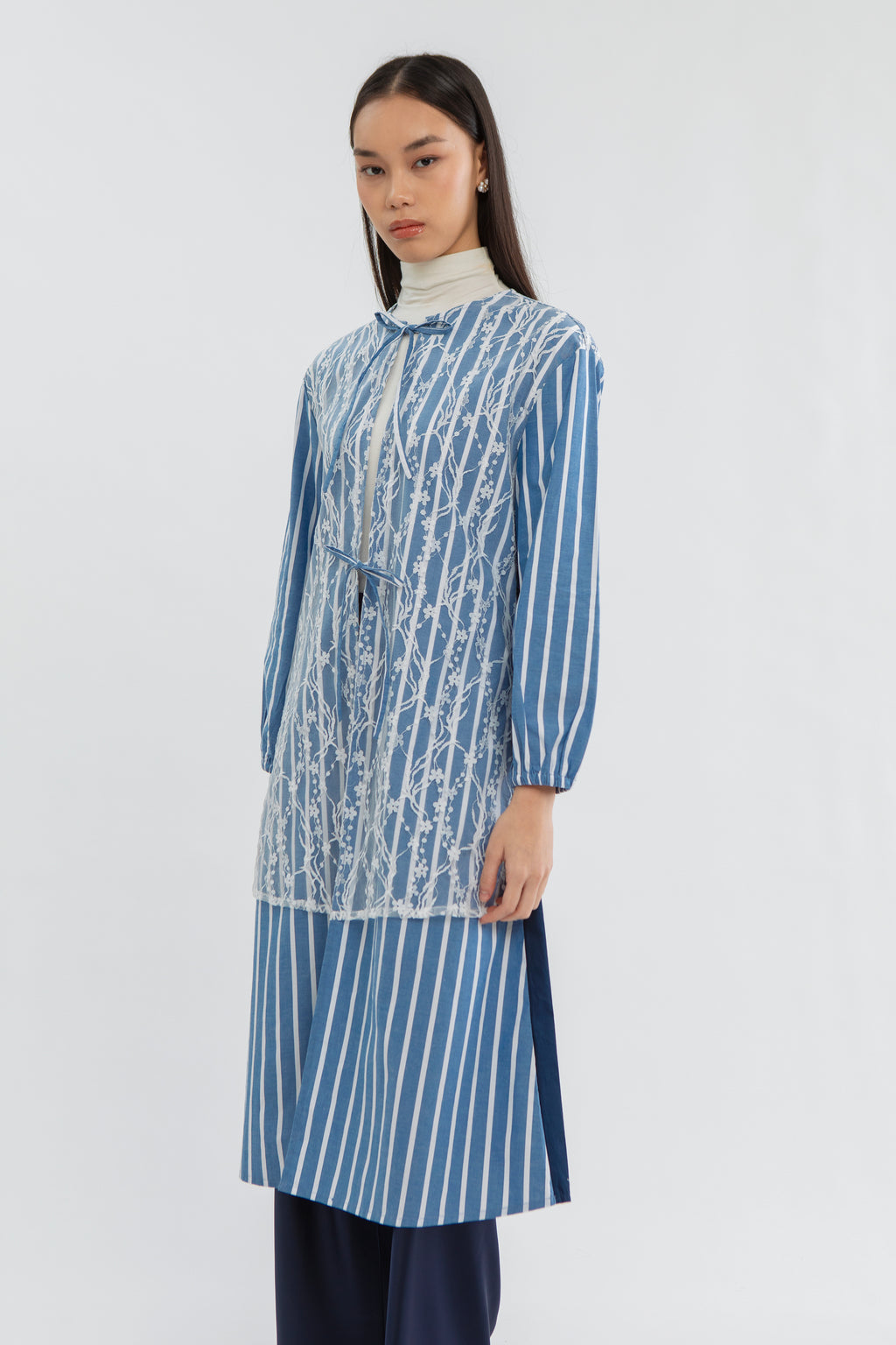 This long outerwear silhouette is reimagined in a delicate mix of cotton and lace for a feminine feel. Layer it over dresses or your favorite matching separates.