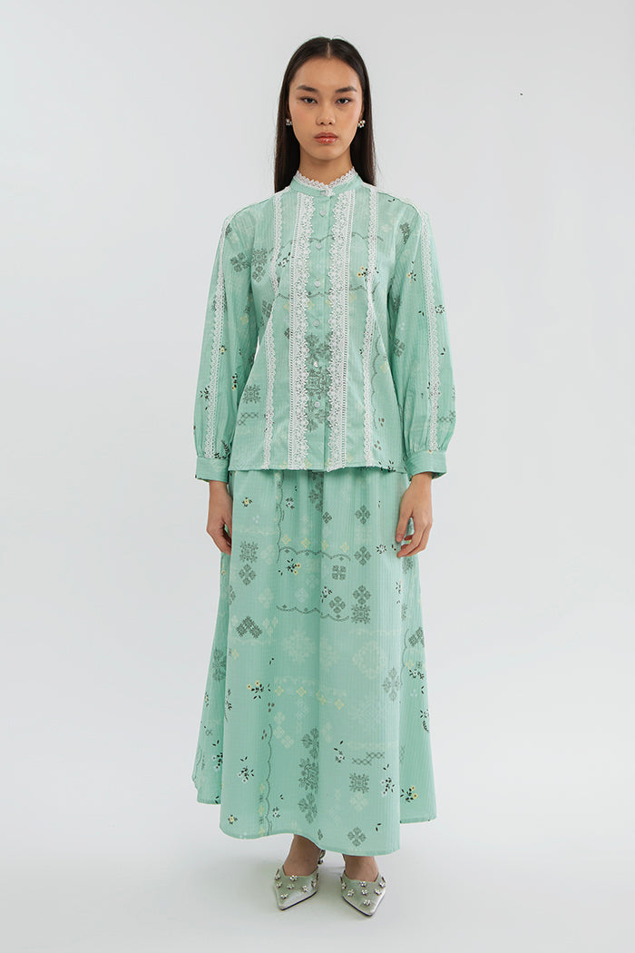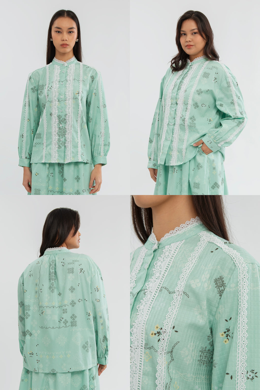 Cut from textured cotton, this long-sleeve shirt is elevated with delicate lace trimmings that bring a soft, feminine contrast to its clean silhouette.