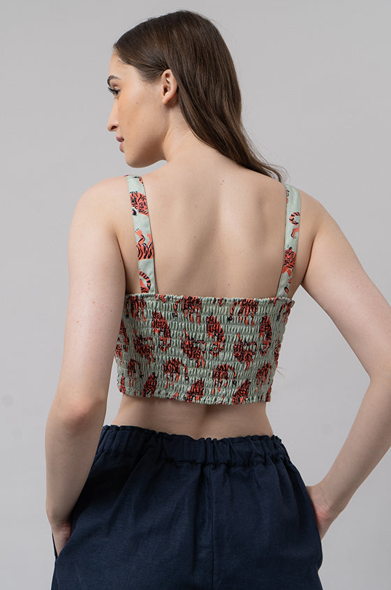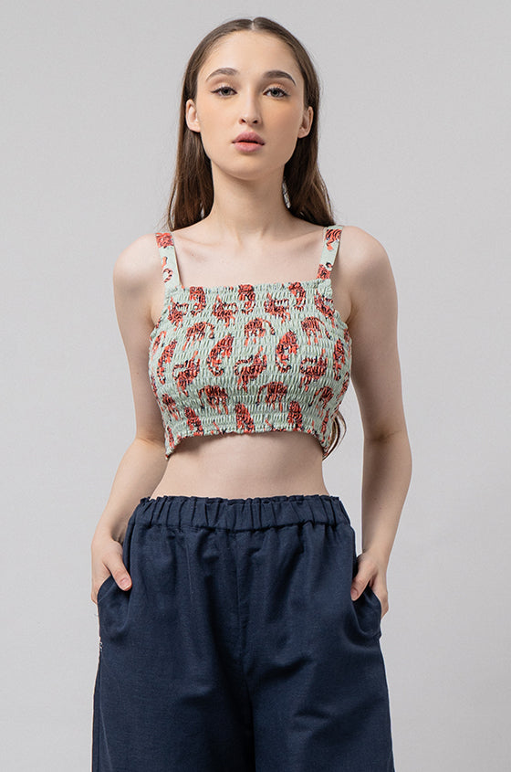 Jump in the trend with smocked top in a cropped silhouette. Square neckline. Closet fit. Wear yours with the coordinating shorts: Tiger Nantes.