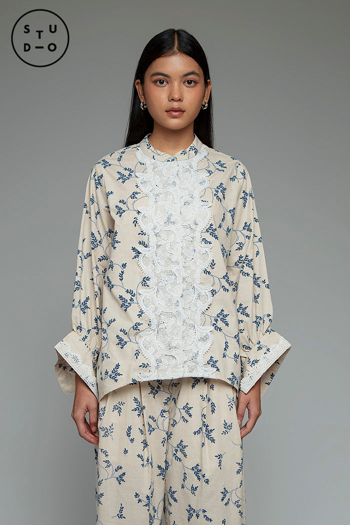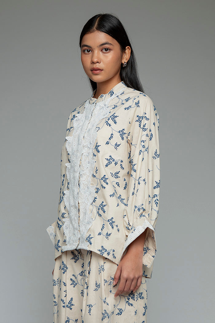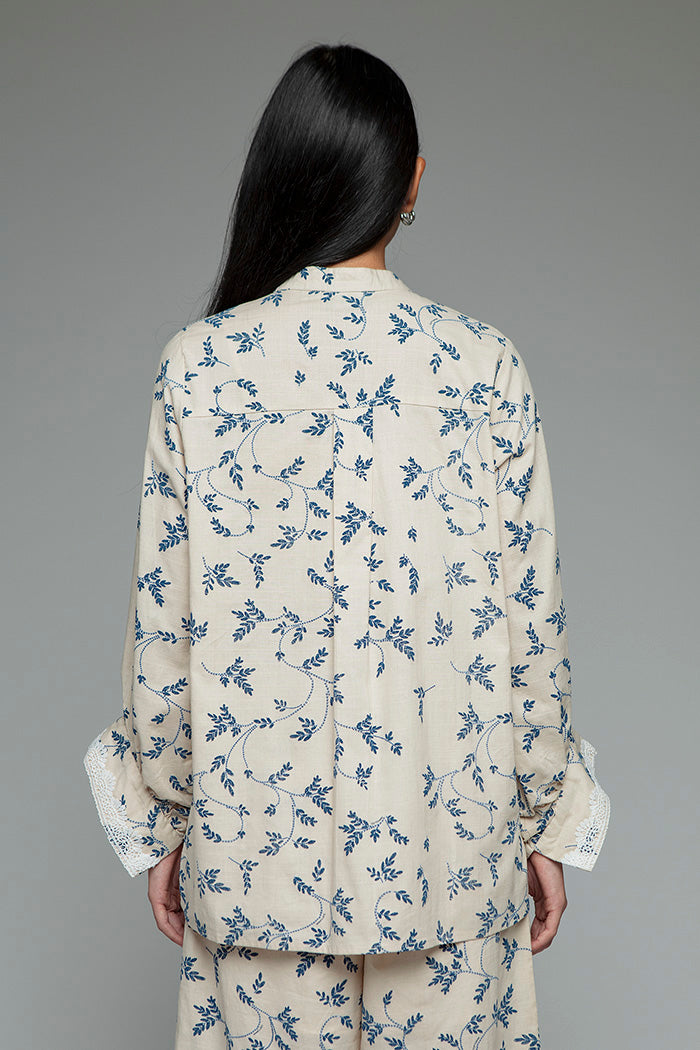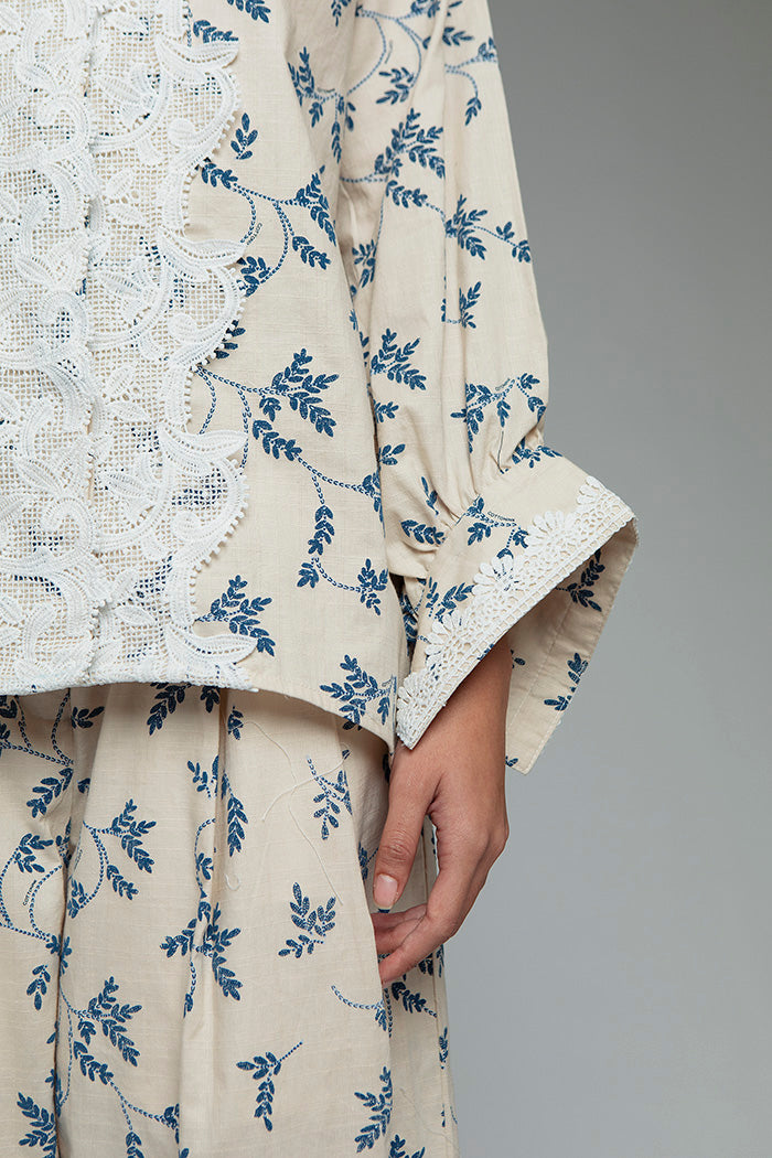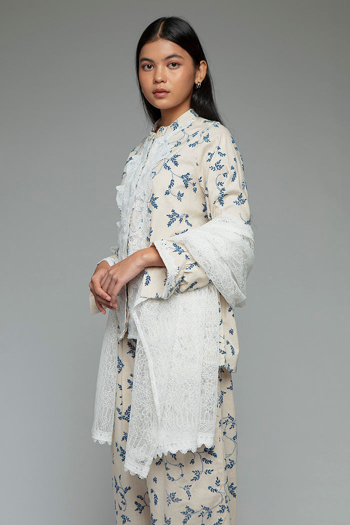 This long sleeve shirt is designed with elicate lace detailing and wide sleeves. Cut for a loose, modest-friendly silhouette, it looks perfect with the matching skirt, Beige Naaz.