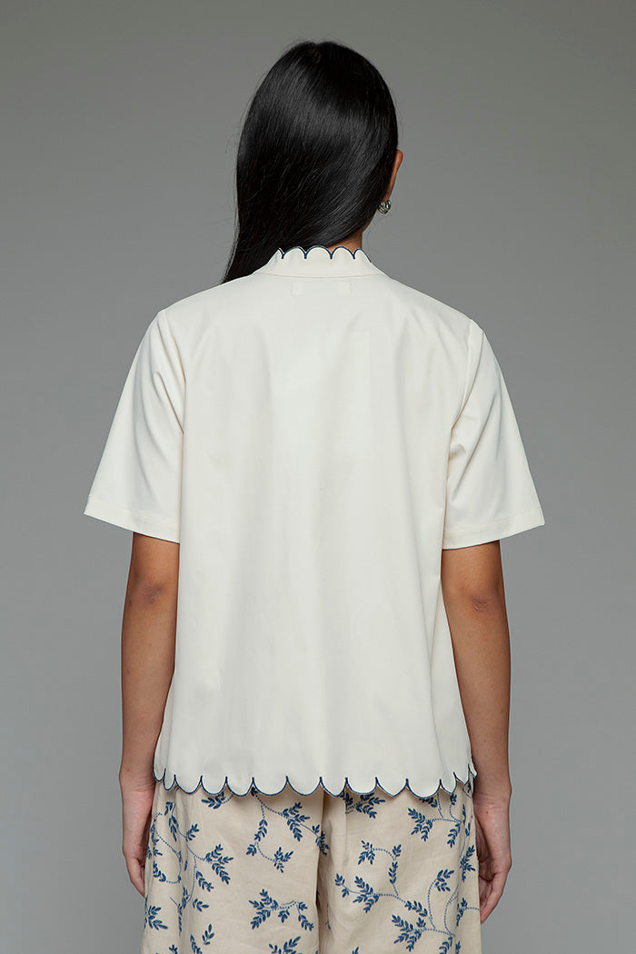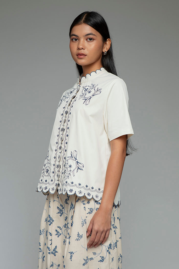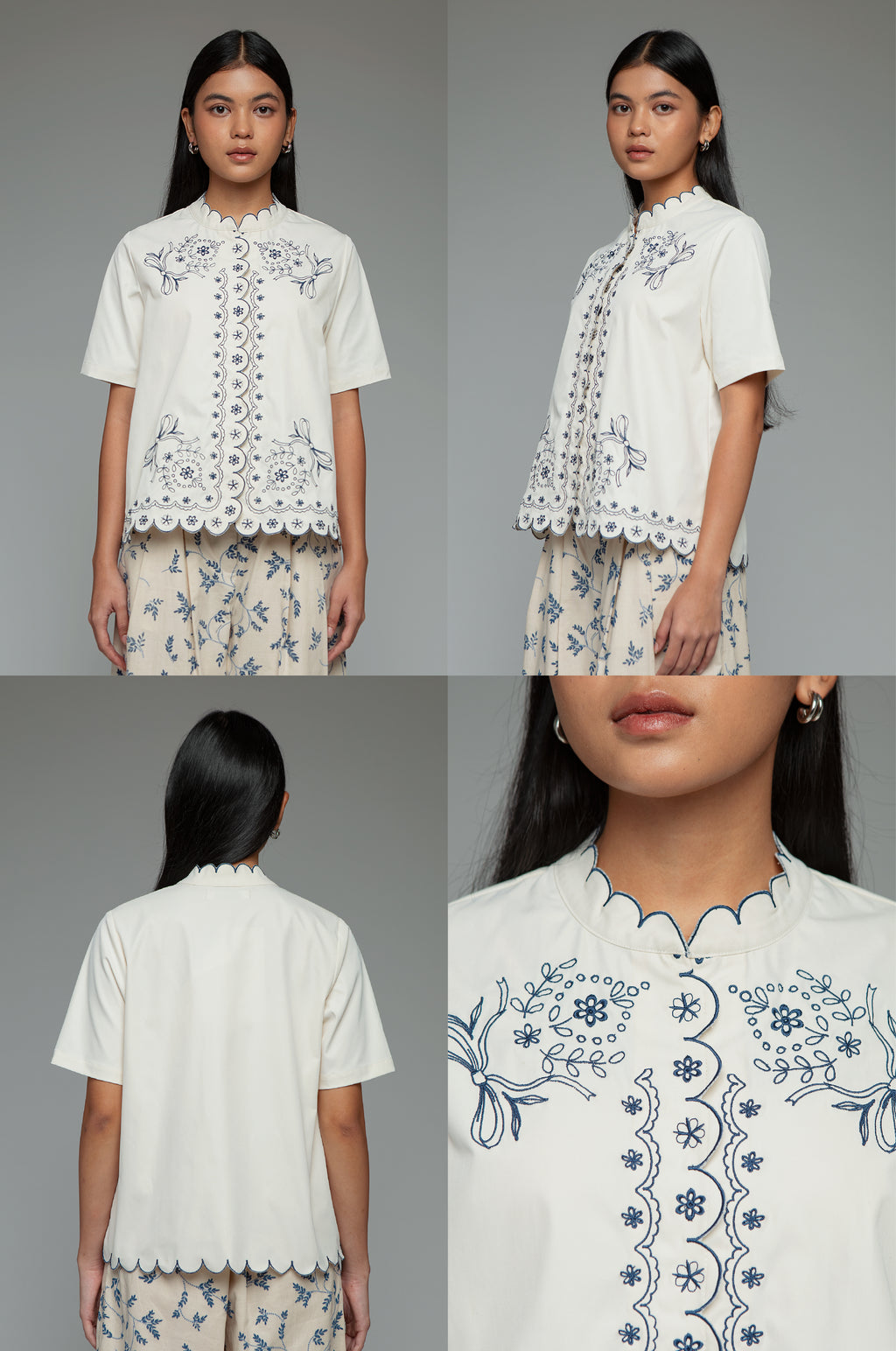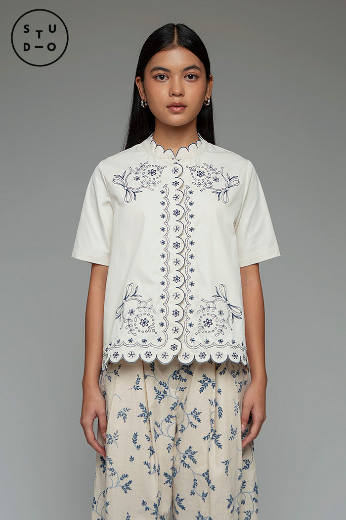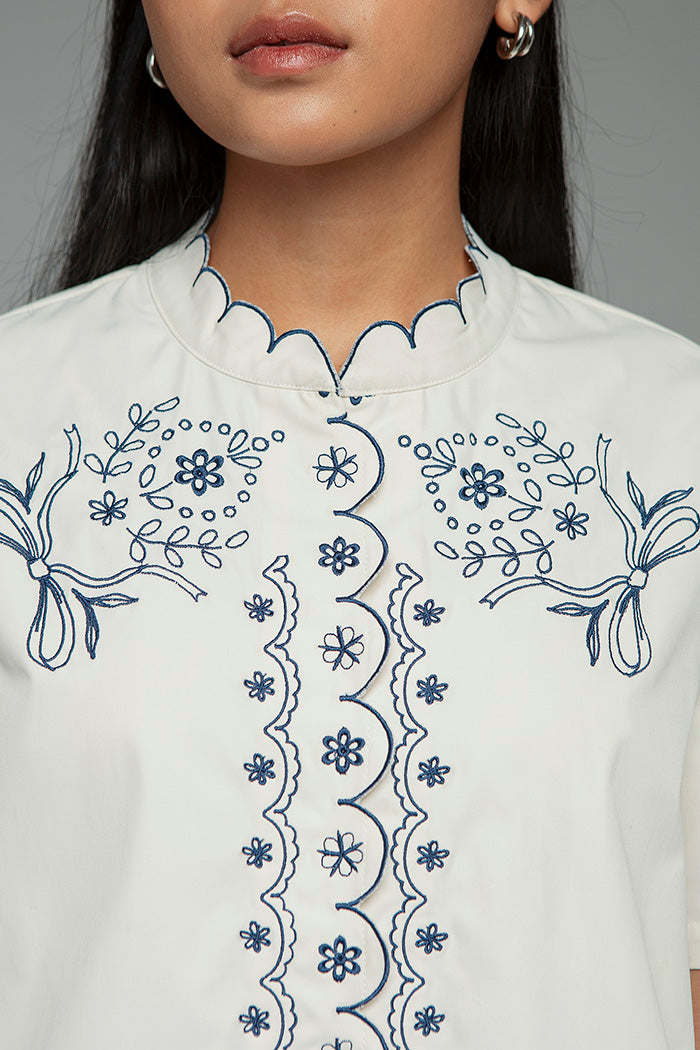 Delicate embroidery meets a boxy silhouette in this timeless short-sleeve shirt. This top is the perfect pair to your favorite wide leg pants and pretty sandals.