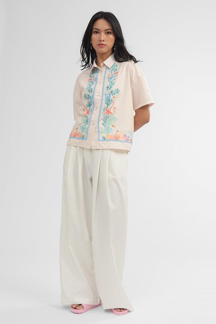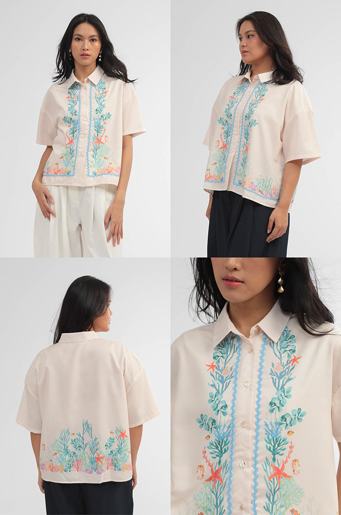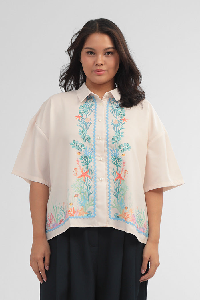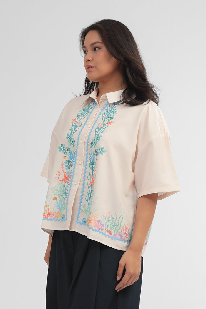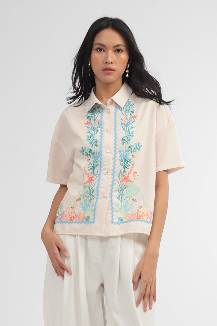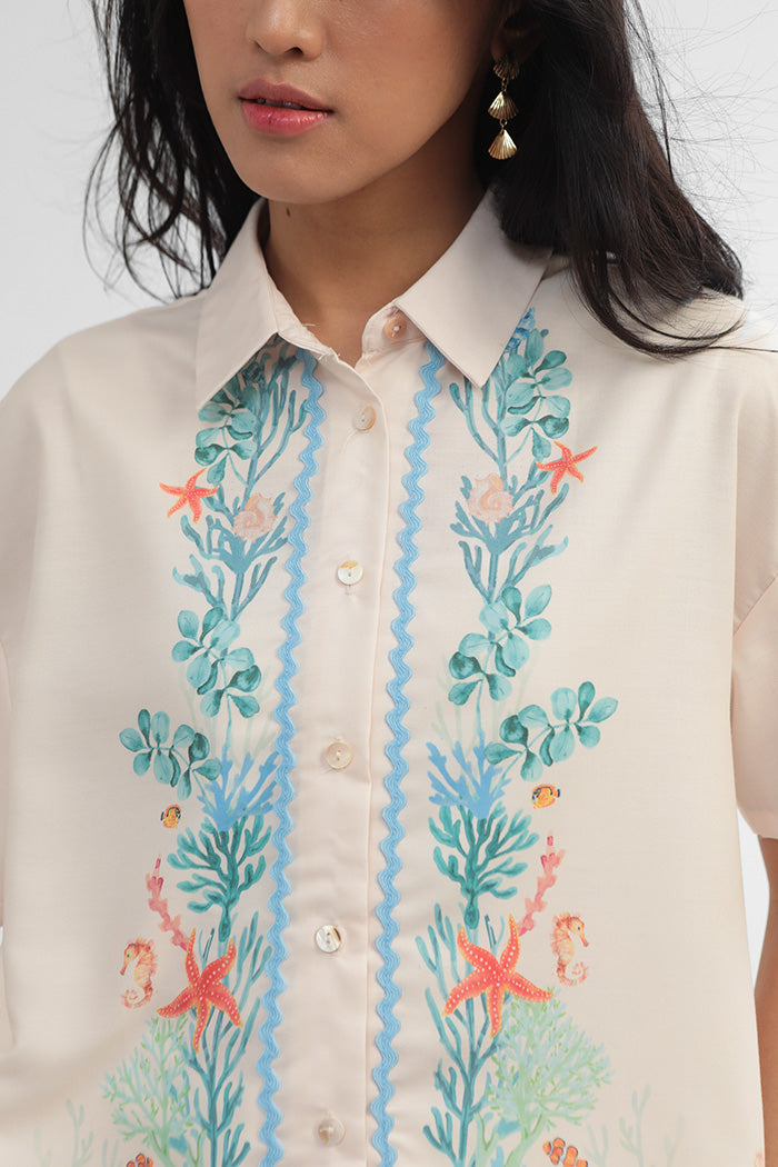 Crafted from cotton-blend material for a boxy fit, this short-sleeved shirt is patterned with our nautical coral print, such a perfect option to bring a summery vibe to any outfit.