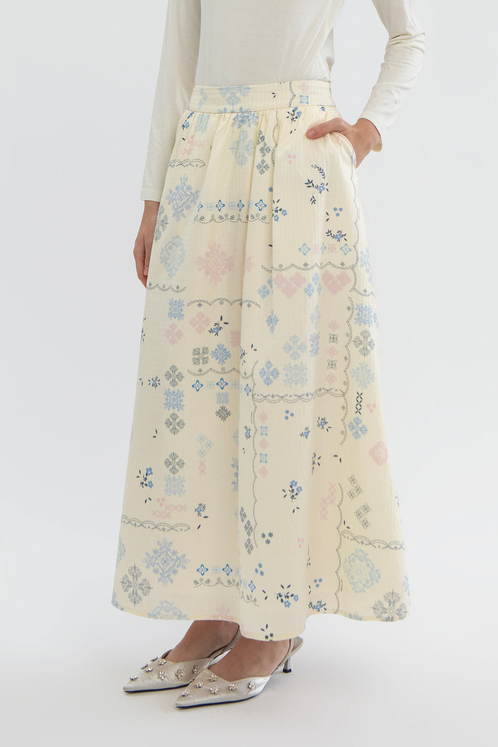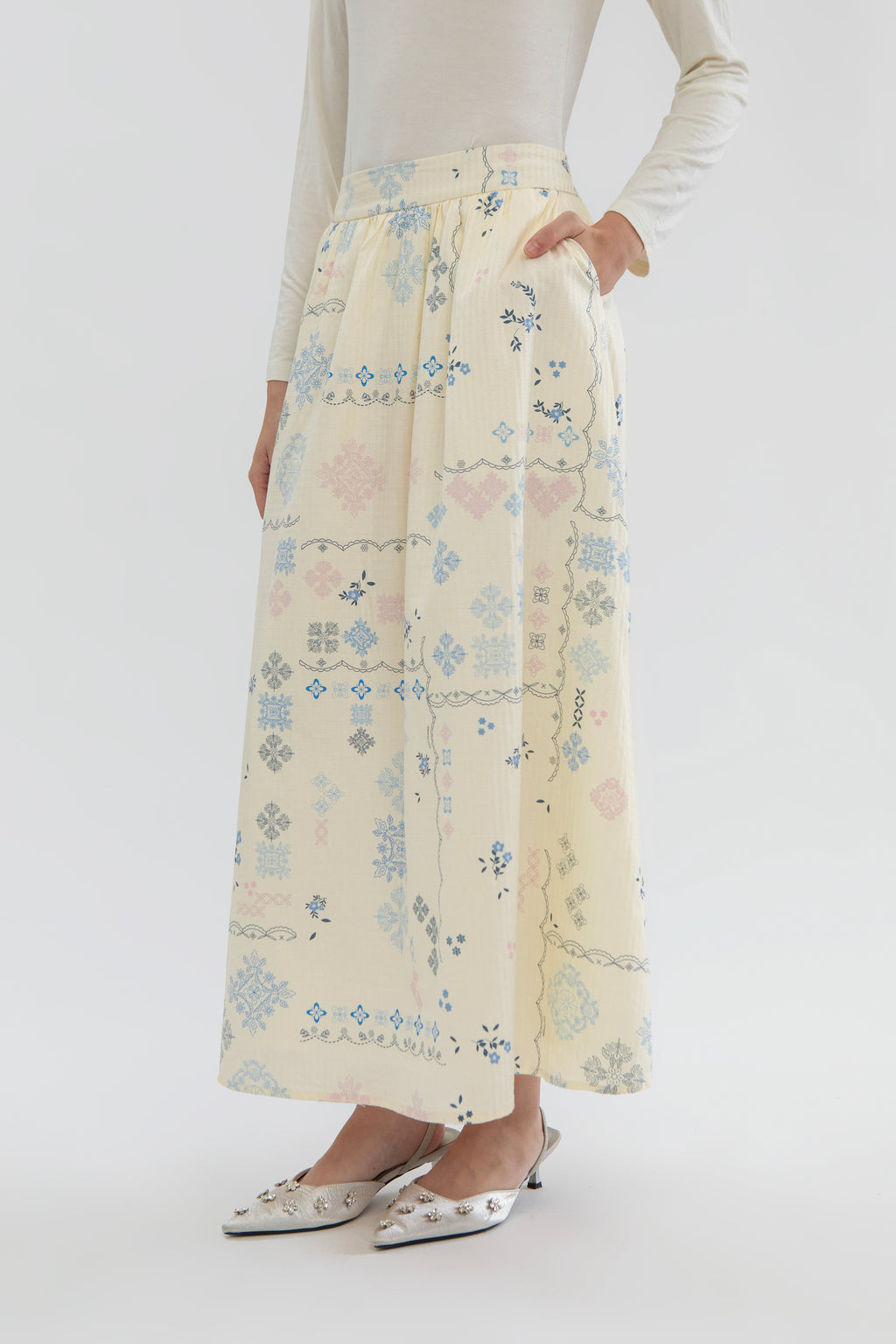 This cotton-made maxi skirt is cut from lightweight material with our exclusive Raya 2026 print in a breezy, flared silhouette and has a comfortable elasticated waist. Wear yours with the matching top for a chic modest look.