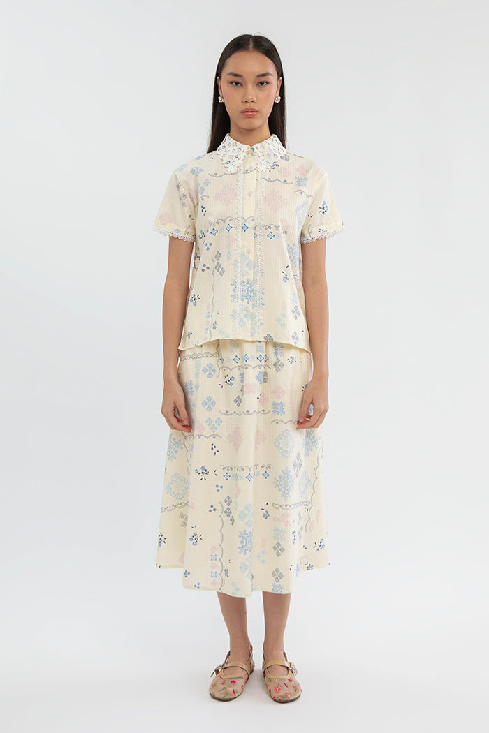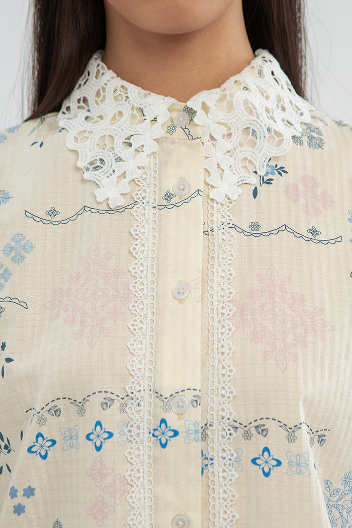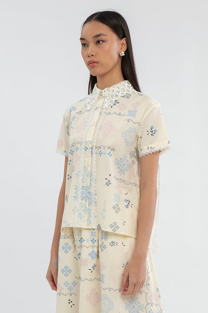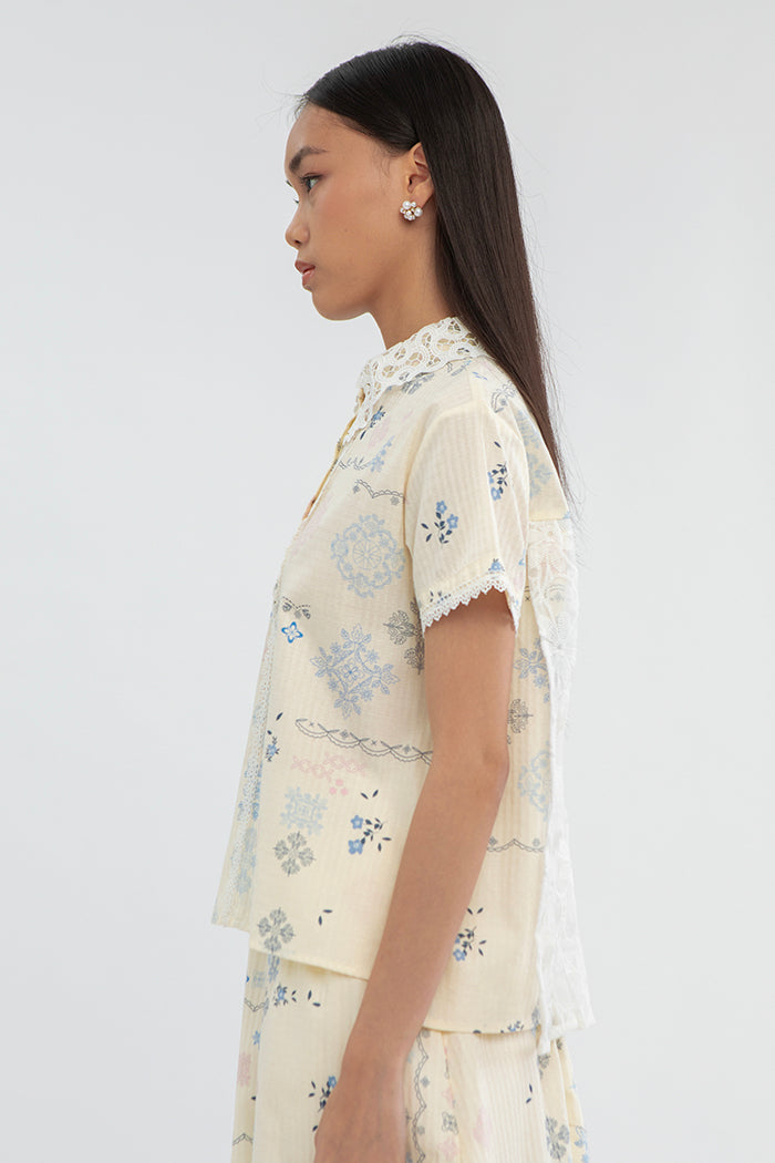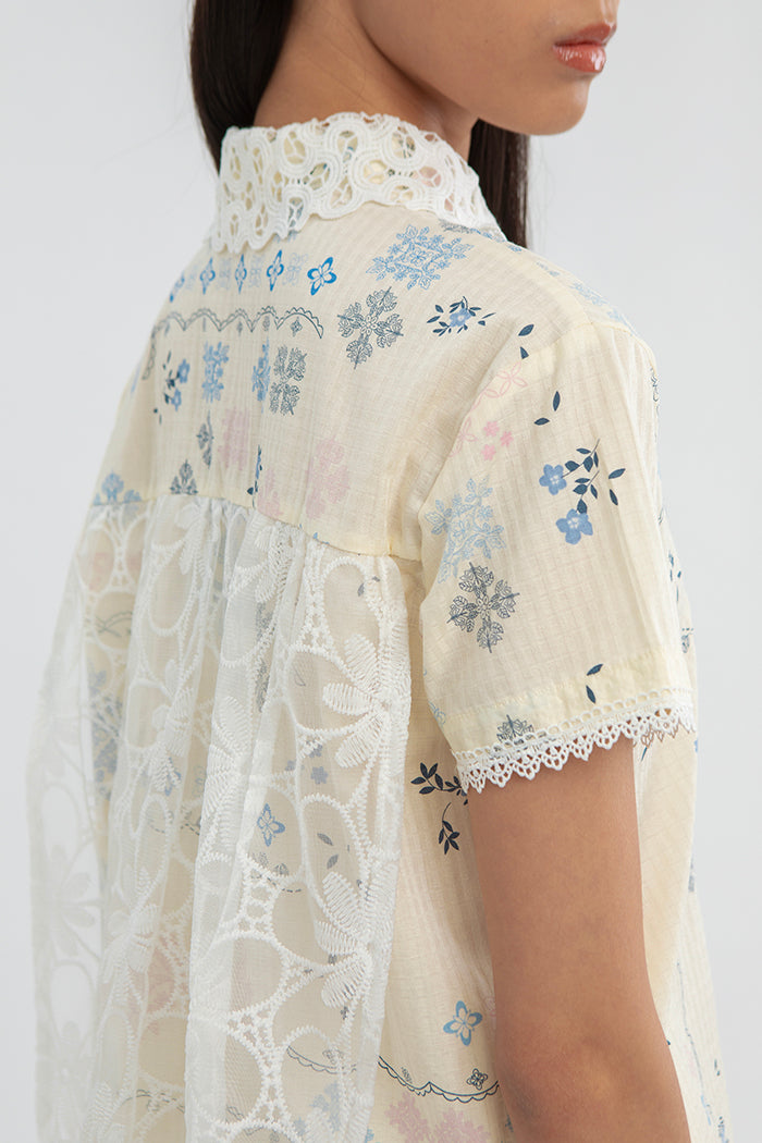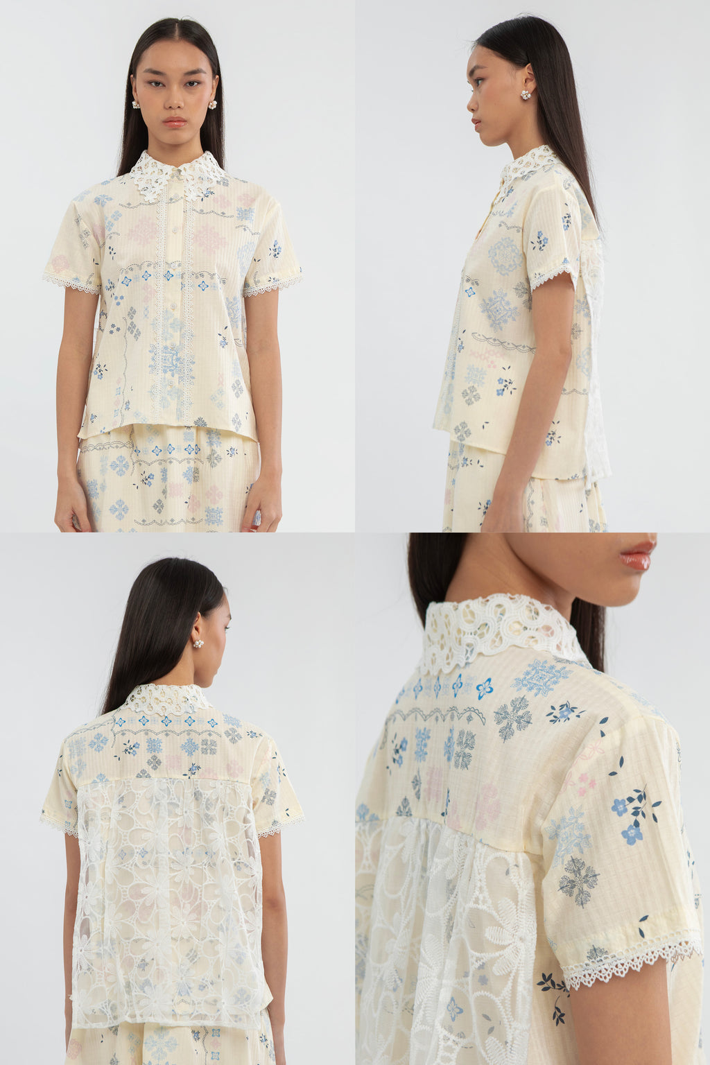 Crafted from cotton, this short sleeve shirt is accented with delicate pleated lace at the back, bringing a modern romantic touch to Hari Raya dressing.