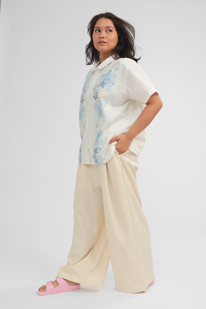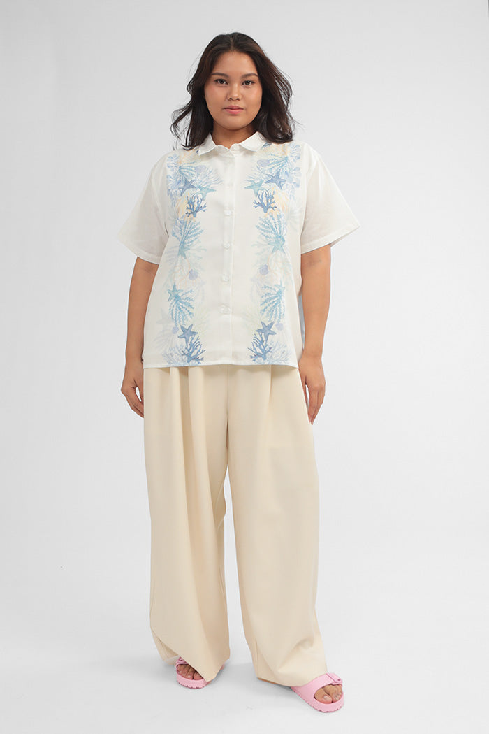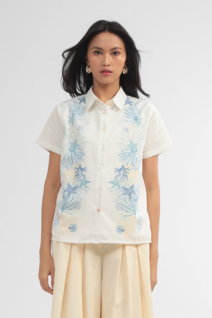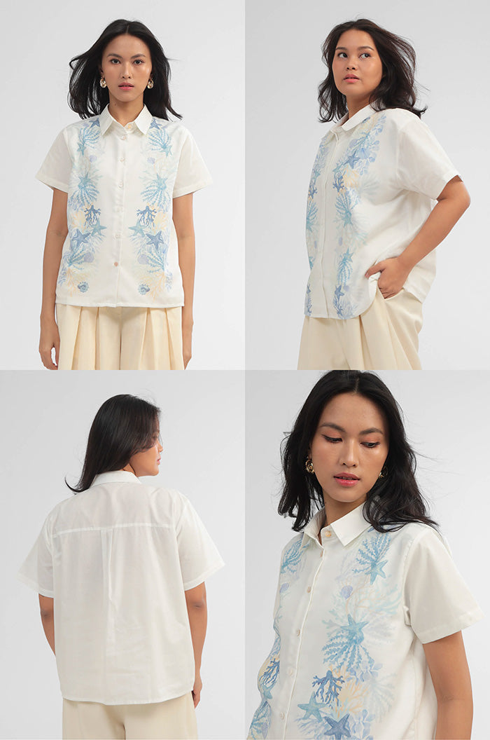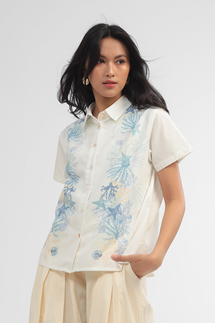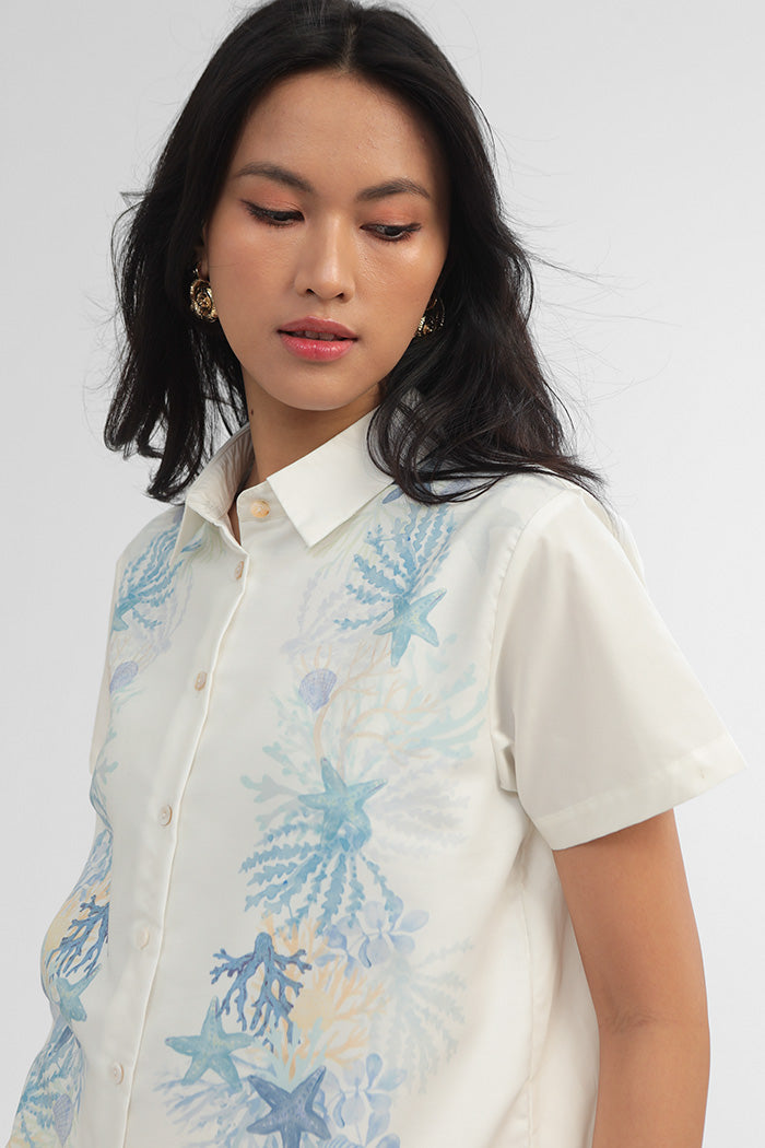 Crafted from cotton-blend material for a boxy fit, this short-sleeved shirt is patterned with our ocean-inspired print, such a perfect option to bring a summery vibe to any outfit.